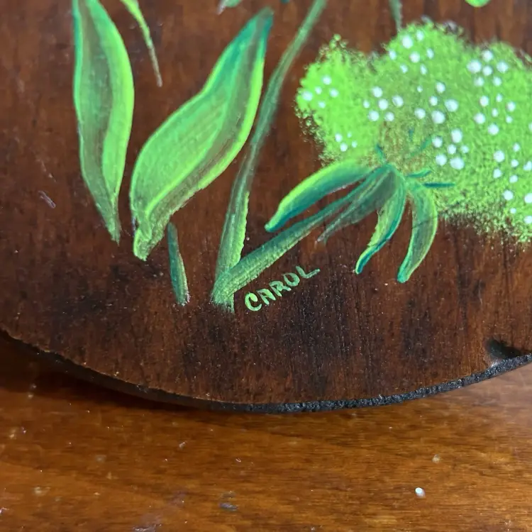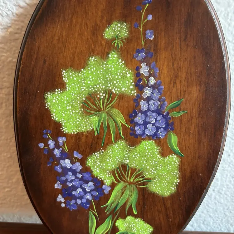 Vintage Hand Painted Lilac Wooden Wall Plaque Floral Gallery Wall Signed Carol