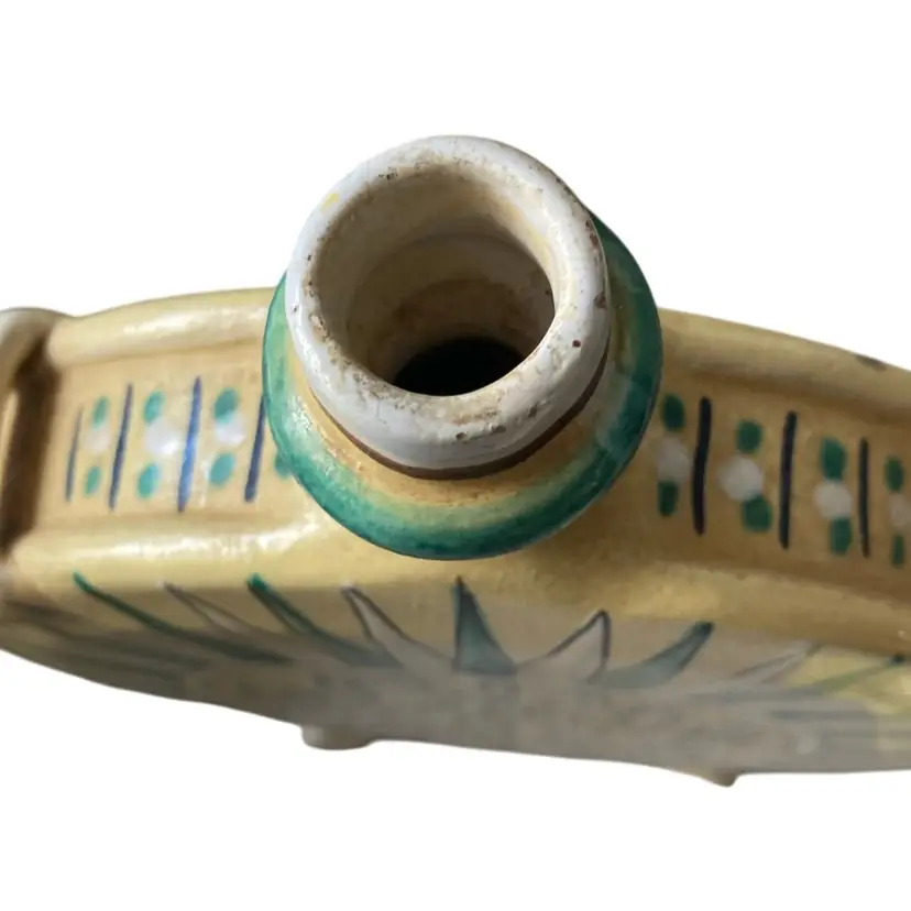 8” x 6” yellow and green ceramic bottle Slovenska Keramiks
