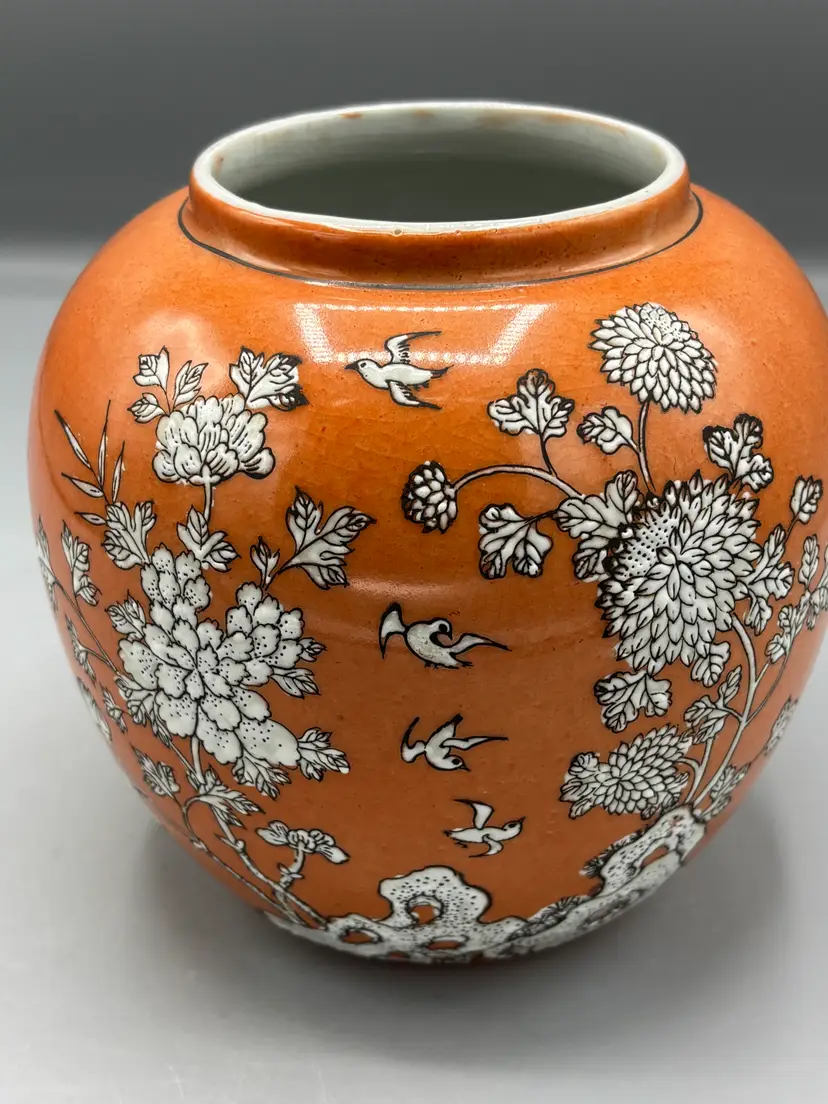 Discover timeless elegance with this exquisite vintage hand-painted porcelain ginger jar. Adorned with delicate birds and blooming flowers, each brushstroke showcases authentic artisanal craftsmanship. Standing 6 1/4 inches tall with a 4-inch diameter, this decorative piece brings sophisticated charm to any room. Perfect for collectors seeking genuine vintage treasures or anyone looking to add a touch of classic beauty to their home décor. A stunning accent that celebrates traditional porcelain artistry.