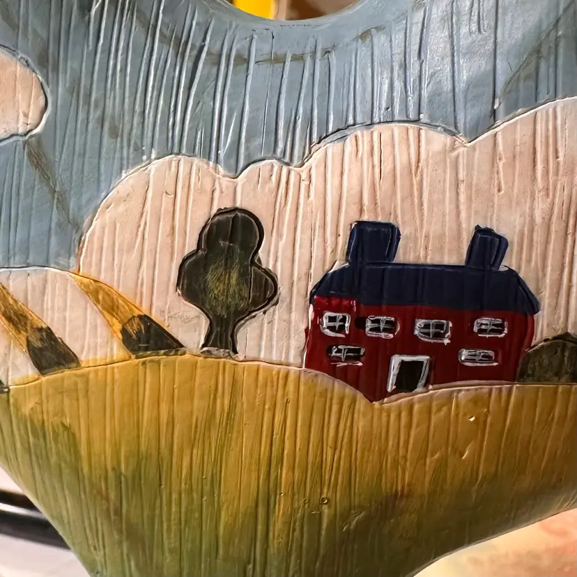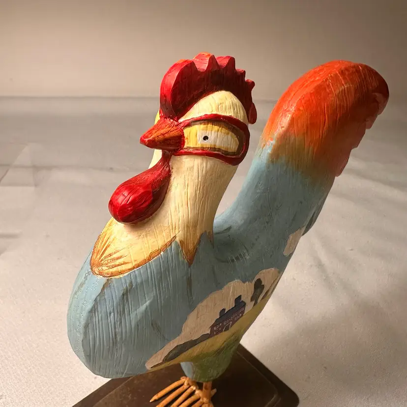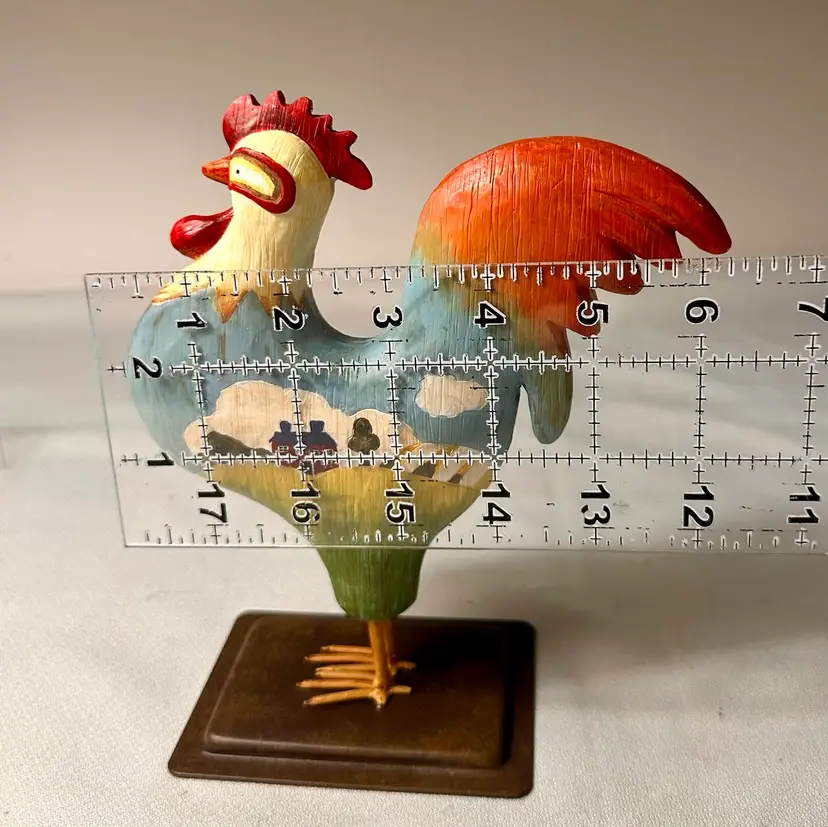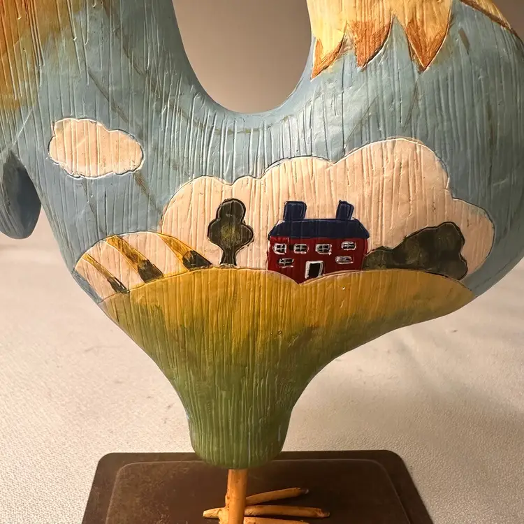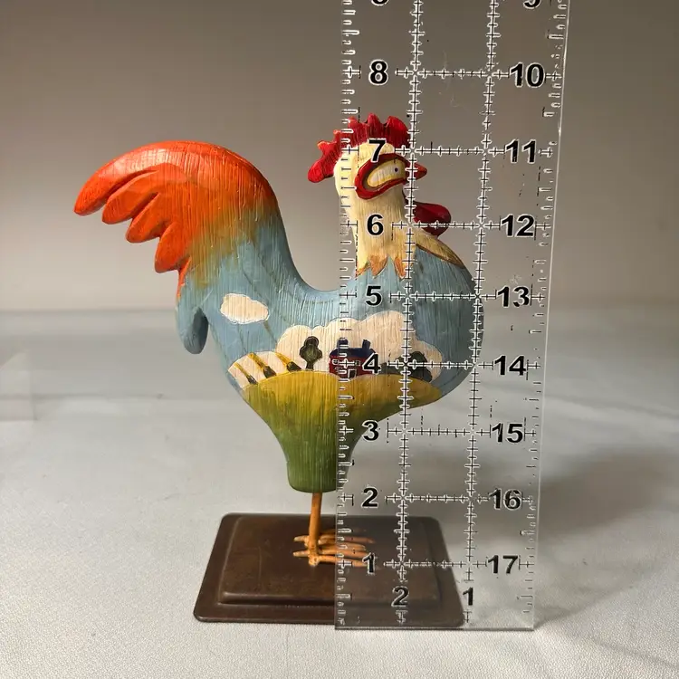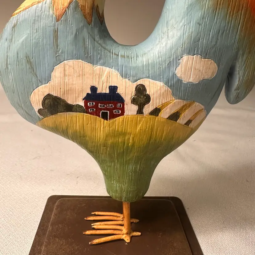 This listing is for a hand-painted Russ Berrie folk art rooster figurine. This is a charming addition to any farmhouse or country home decor. This rooster is made of resin and has a metal base. He is 7.5” tall by about 6.5” wide. He is in beautiful vintage condition, no nicks or cracks.
