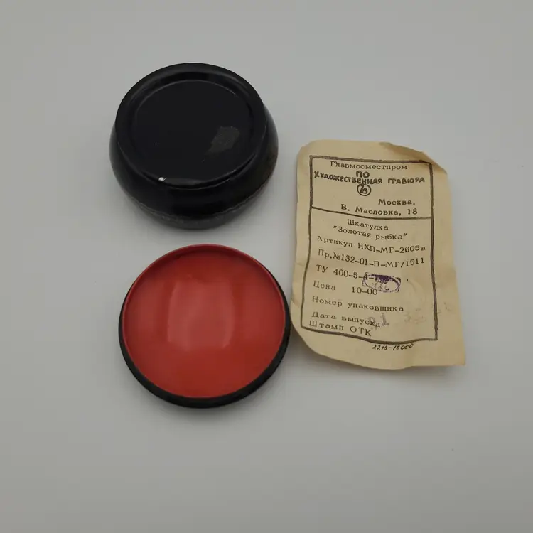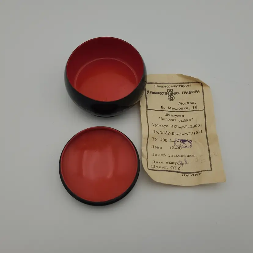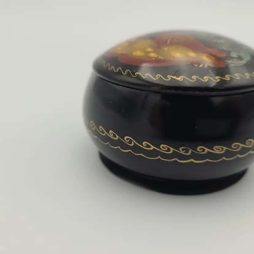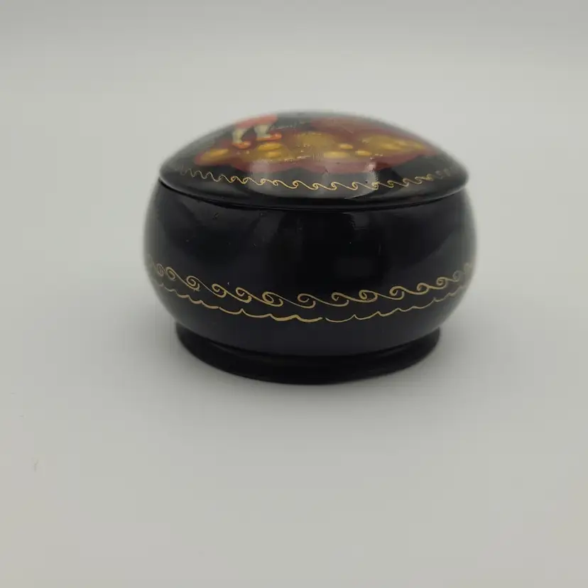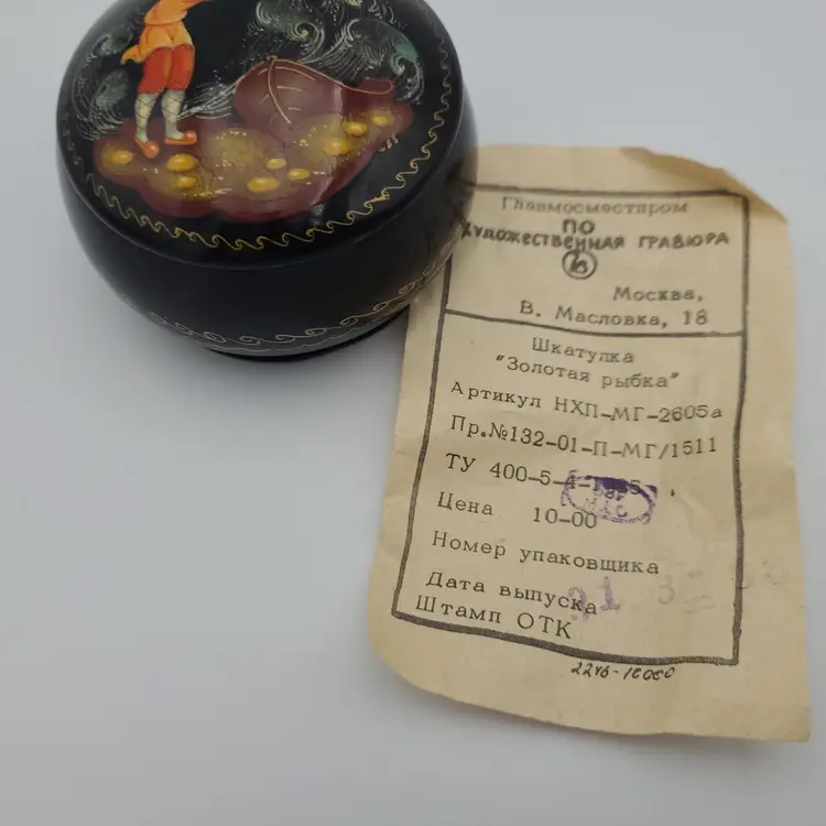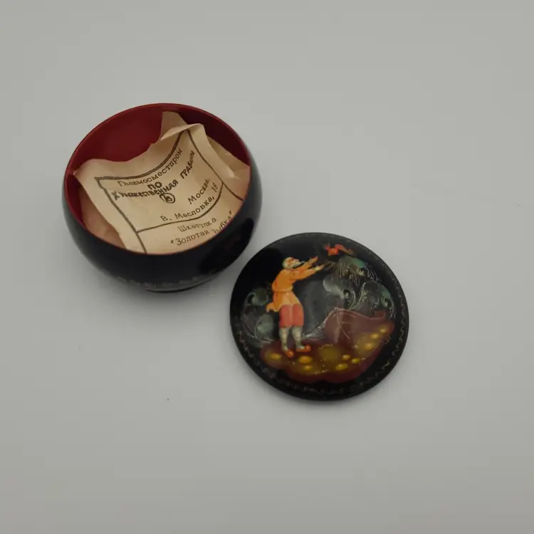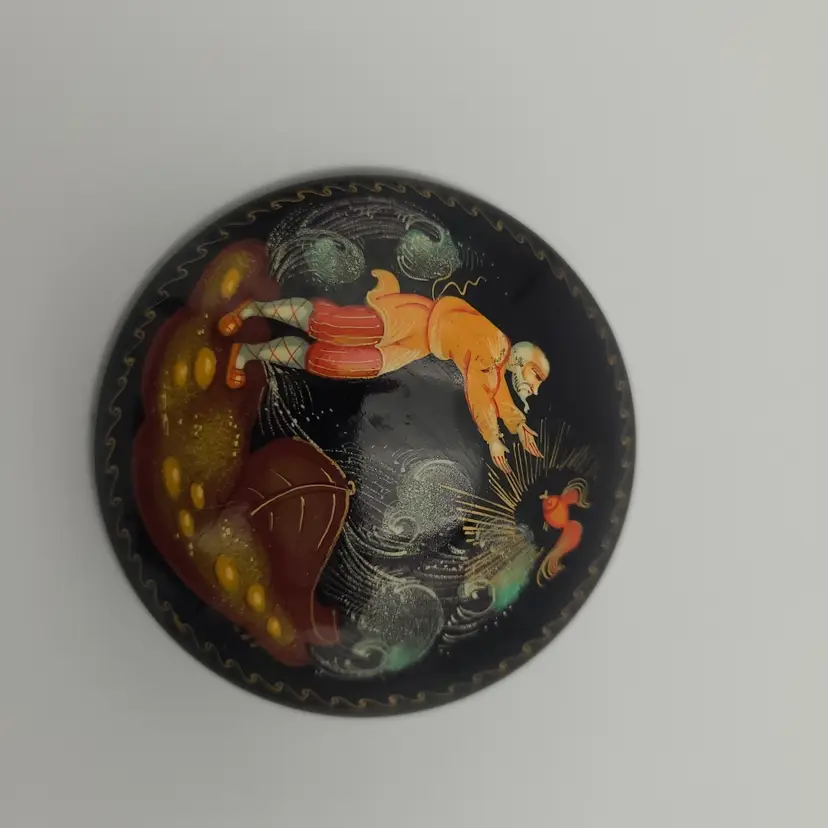Vintage Hand Painted RUSSIAN Lacquer FISHERMAN & the FISH Tale Box with Lid 1995