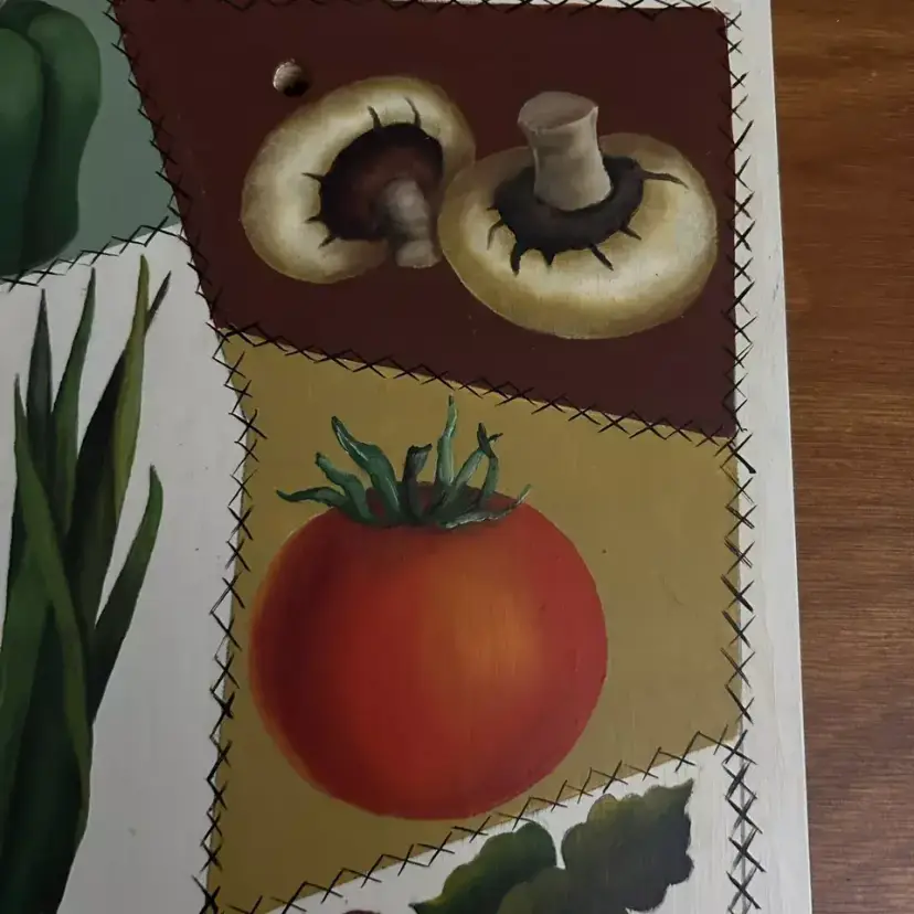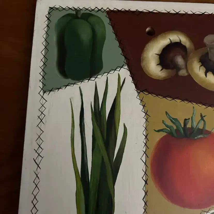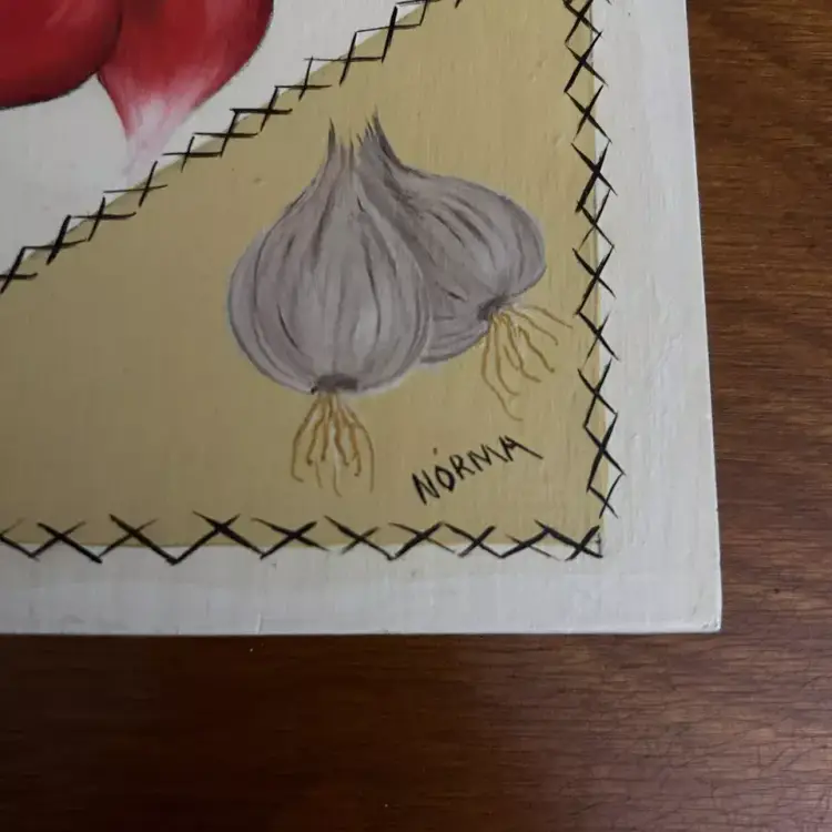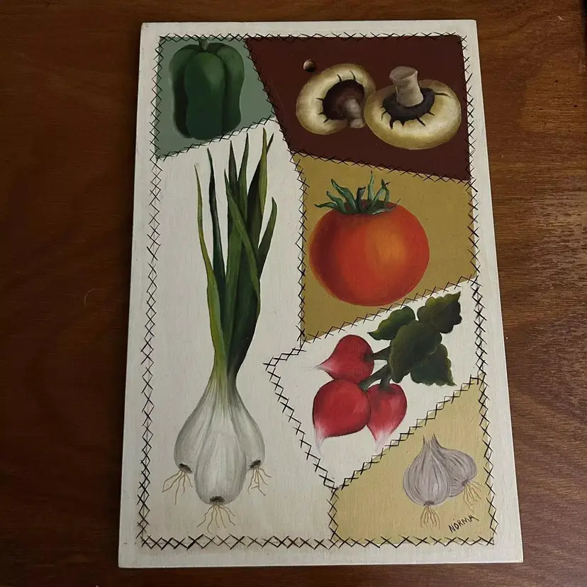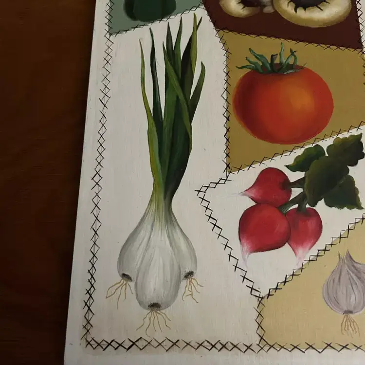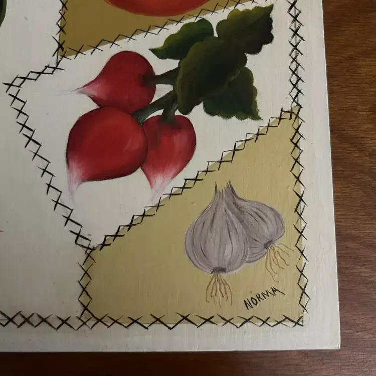 Vintage Hand Painted Vegetables Kitchen Art 12” X 8” Wooden Farmhouse