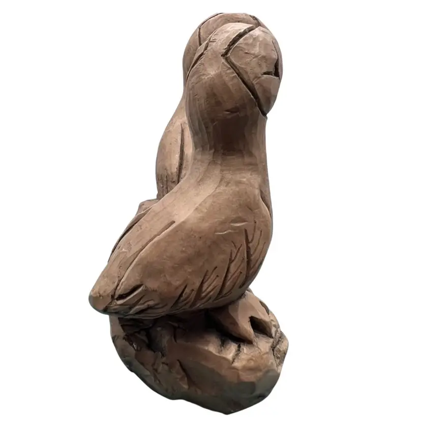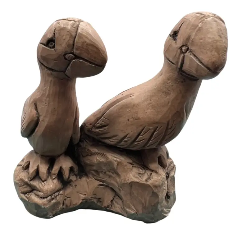 This bird figure was carved from volcanic ash from Mount St Helens. It is dated 1980 and a very collectable item. The birds look like Puffins or a similar sea bird. They do have the original sticker on the bottom saying they were produced for ACE Alaska and crafted by hand.