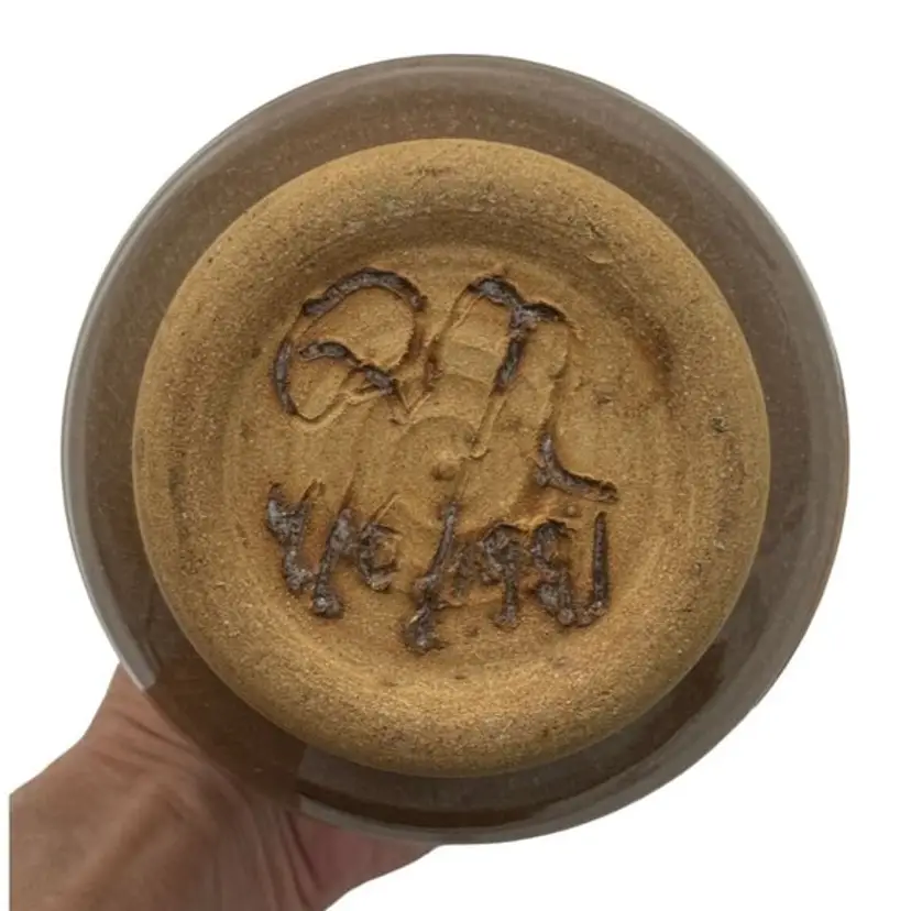 • Handmade • Signed by R.N. • 1991 creation • Brown glazed • 5.5"H x 4.5"W • Pottery material • Tan/Brown color