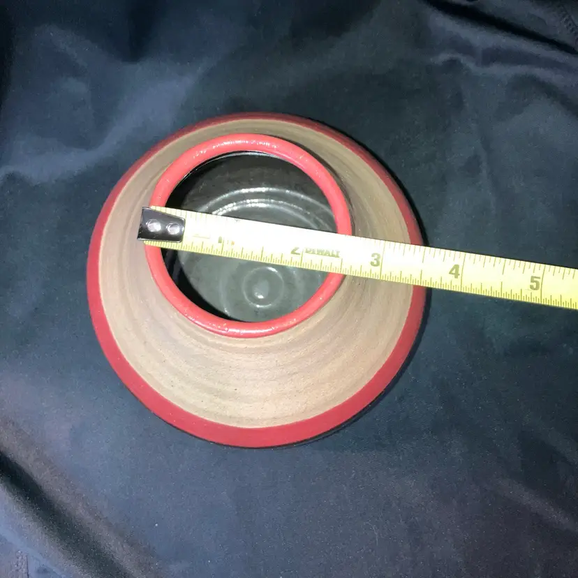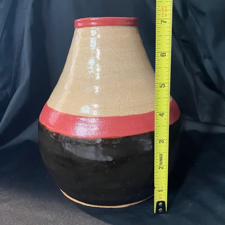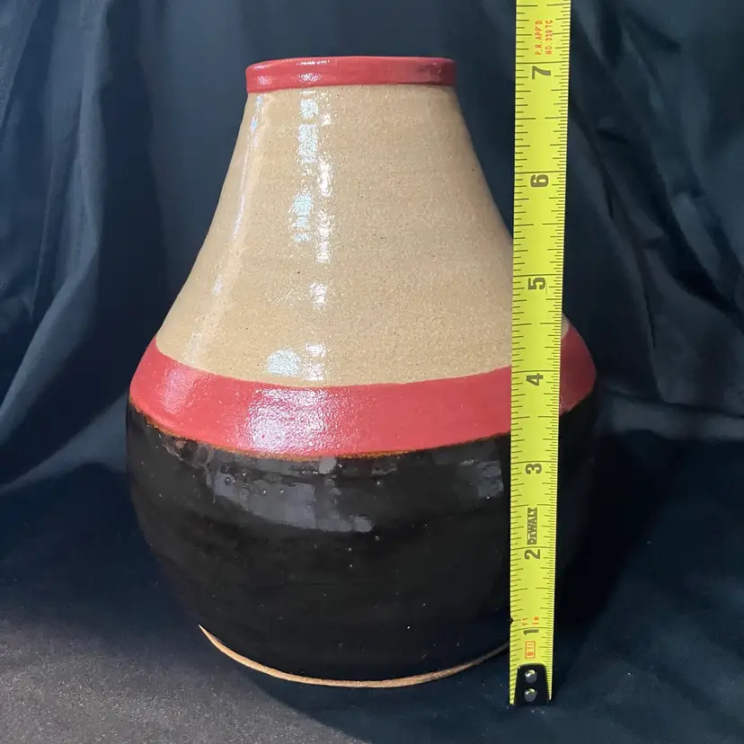 The vase is Artist signed. measures 7 inches in height and 5.5 inches in width. It has a contemporary style made in the USA. weight 4 lbs.