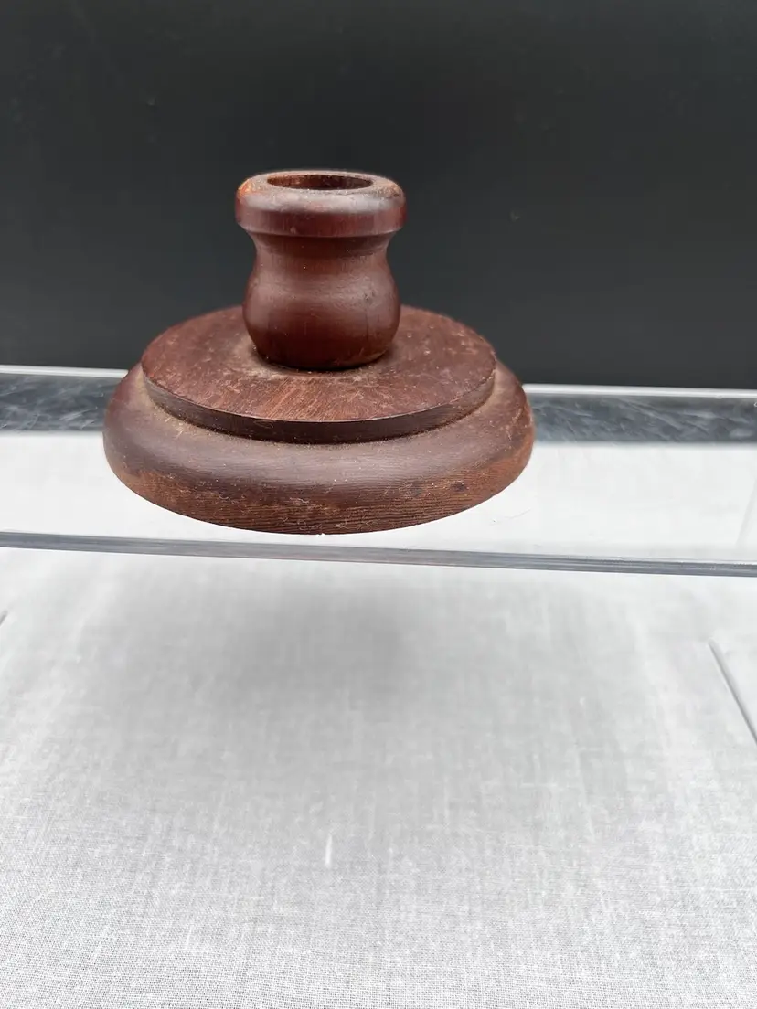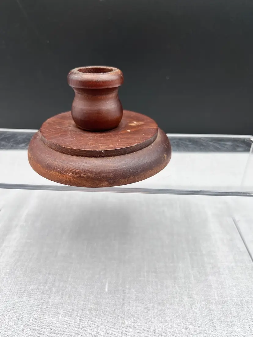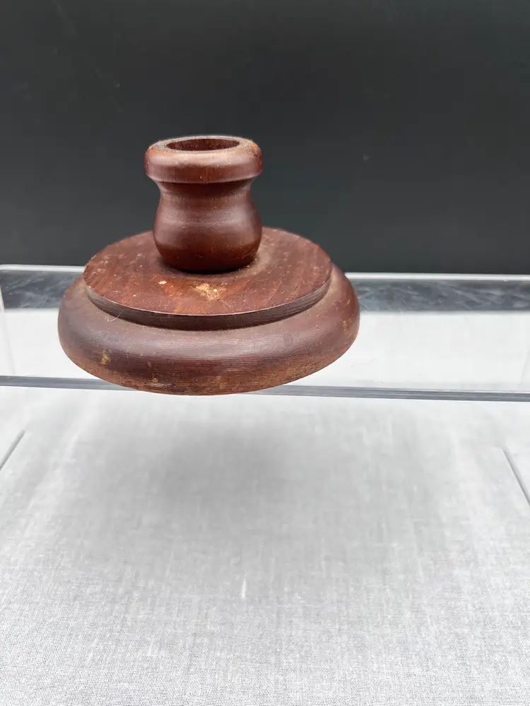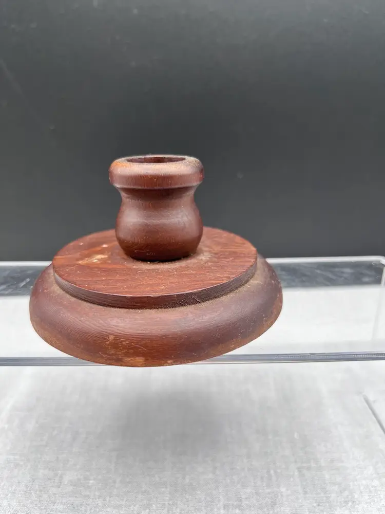 Beautiful hand turned wood candle holder, unmarked 4" at the base x 2" tall