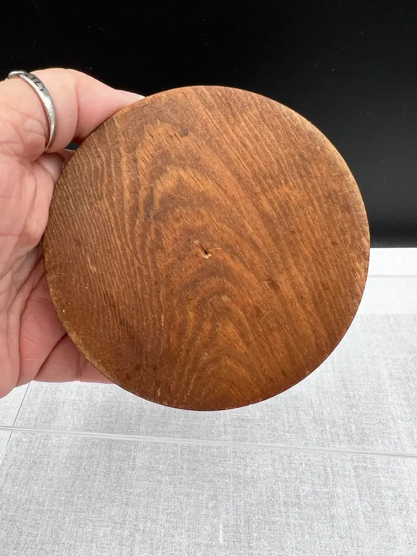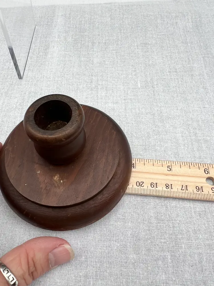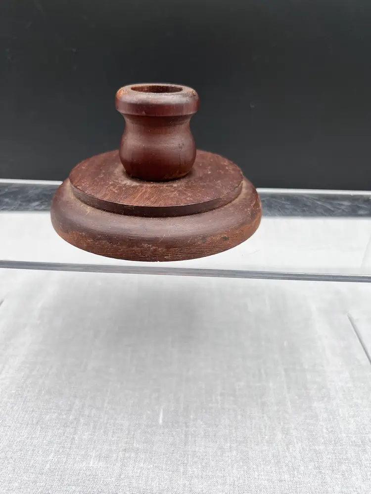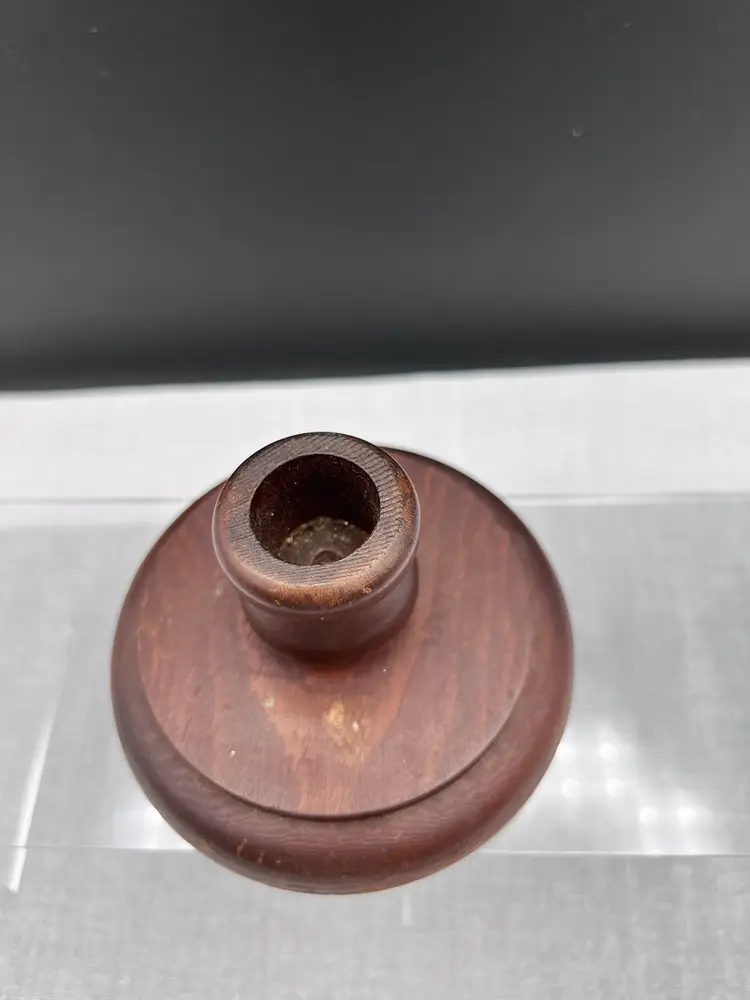 Beautiful hand turned wood candle holder, unmarked 4" at the base x 2" tall