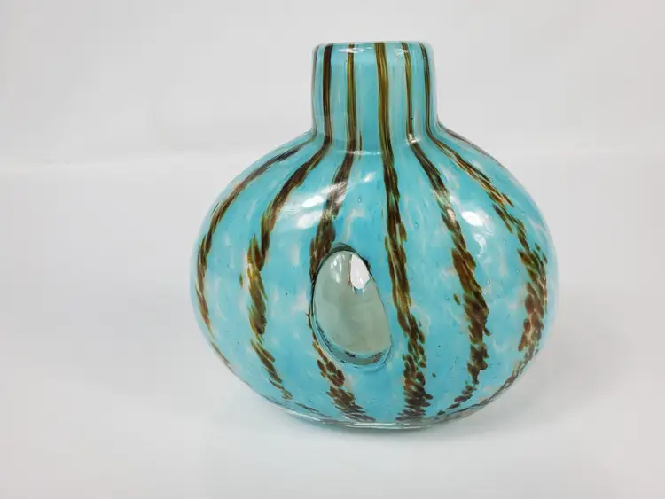 – Pattern: Striped – Type: Vase – Color: Blue – Style: Art Deco – Material: Glass – Production Style: Art Glass