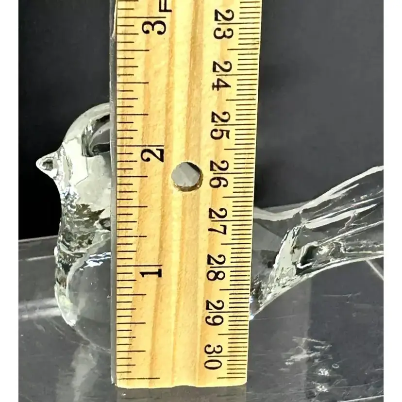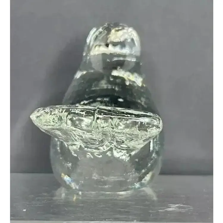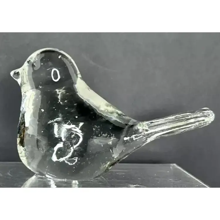 This vintage handblown clear glass bird figurine paperweight is a beautiful addition to any collection. The details of the handblown bird makes it a unique and eye-catching piece. The clear glass adds a touch of elegance and sophistication to any room's decor. Measuring at 3.25 inches in length, 2.25 inches in height, and 1.25 inches in width, this figurine paperweight is the perfect size for display on a shelf or table. Whether you're a collector or simply looking for a unique decorative piece, this vintage bird figurine paperweight is sure to impress.