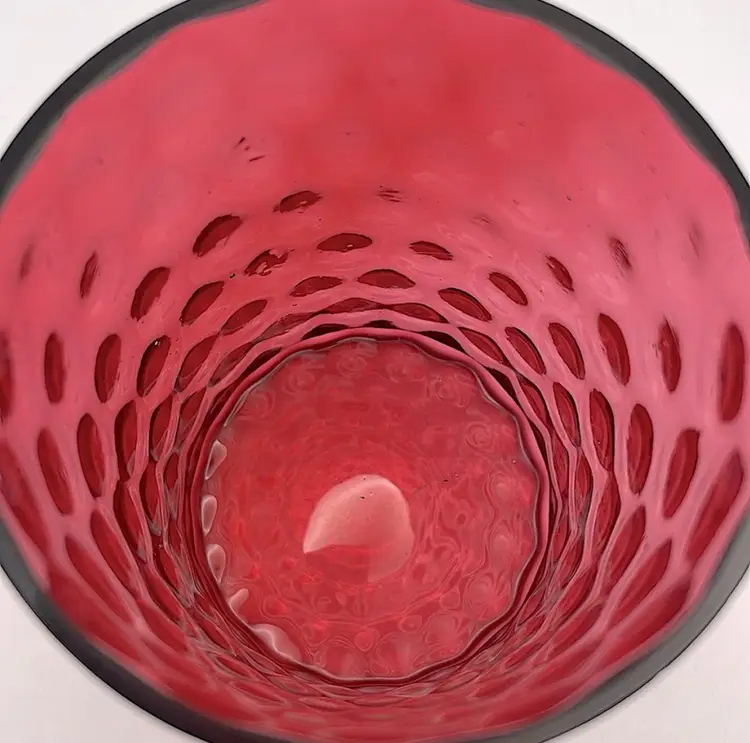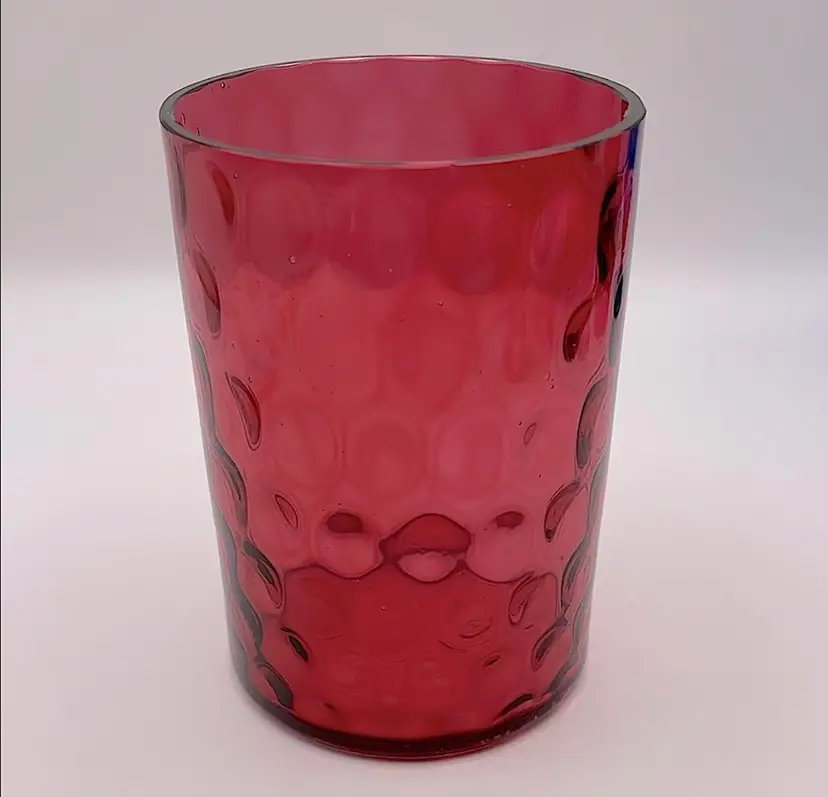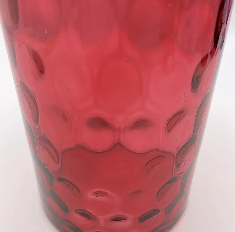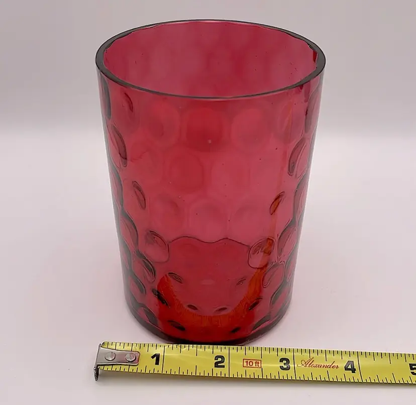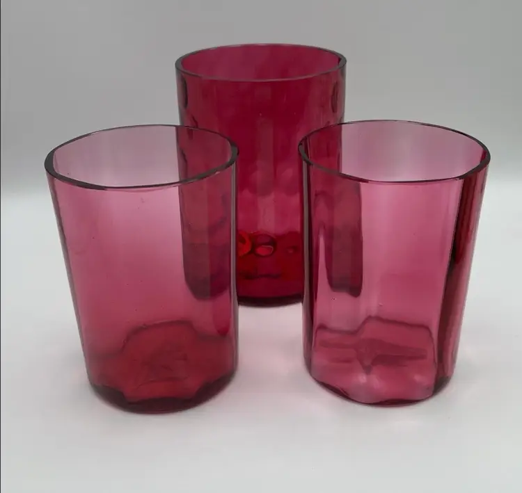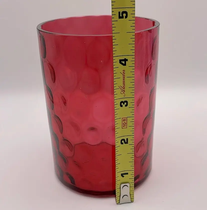 Vintage, 3 Handblown Cranberry Drinking Glasses, 1 Coin Dot/Inverted Thumbprint Pattern, 2 Smooth/Plain, (Imperfections/Bubbles, due to age)
