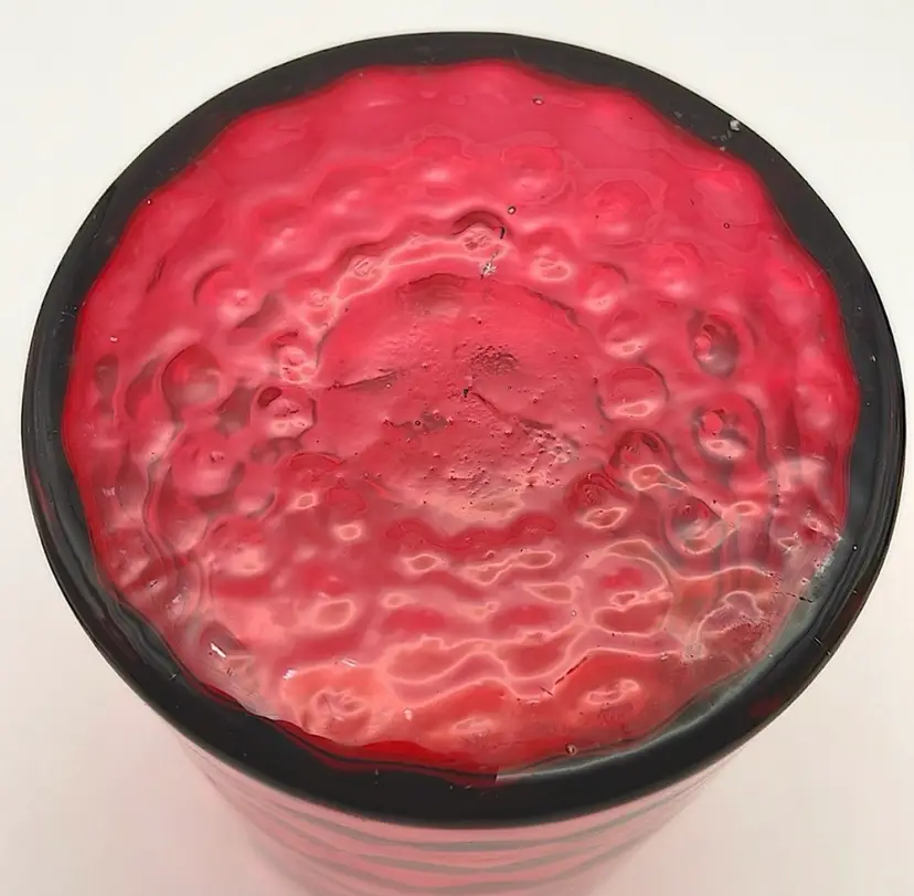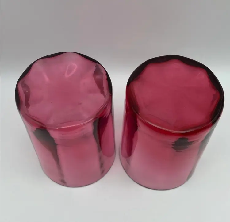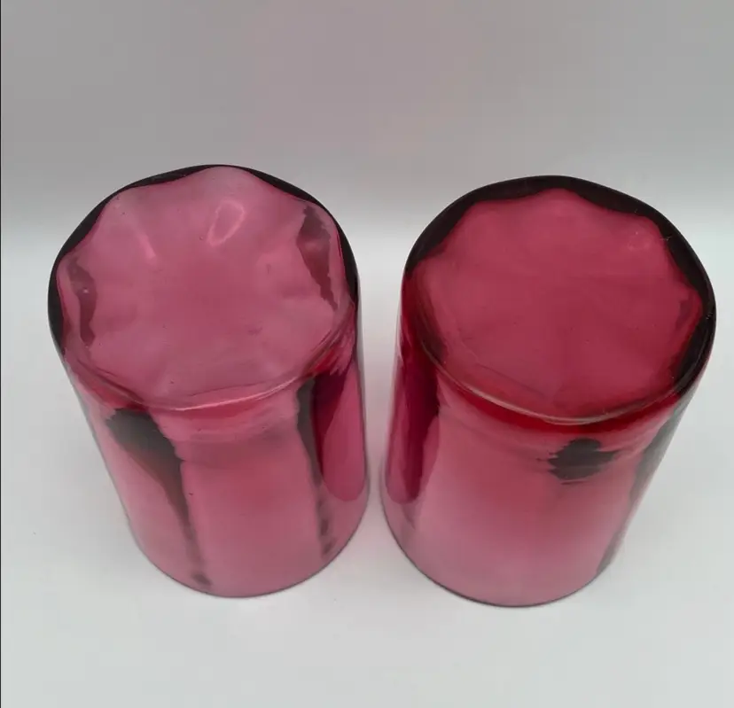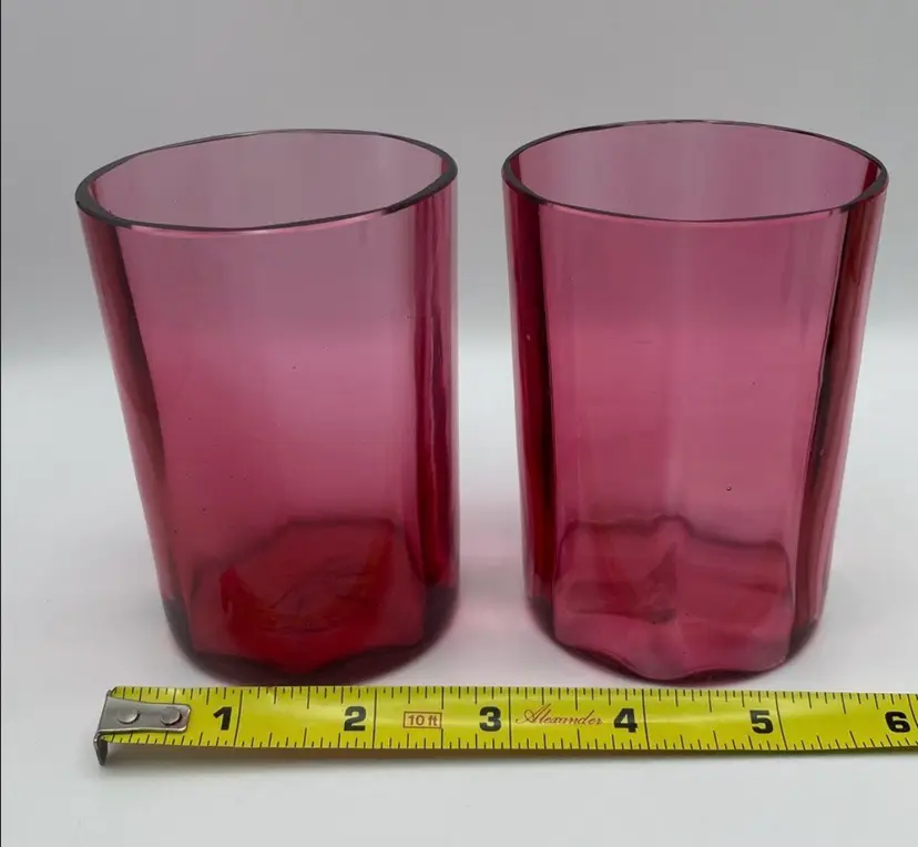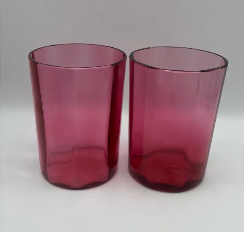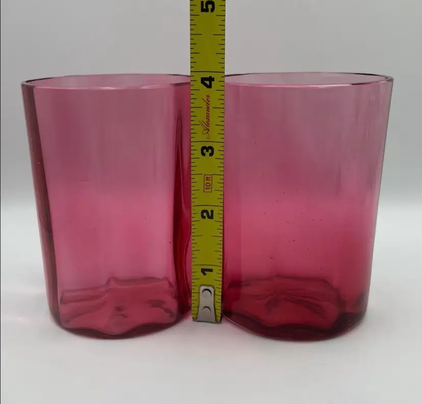 Vintage, 3 Handblown Cranberry Drinking Glasses, 1 Coin Dot/Inverted Thumbprint Pattern, 2 Smooth/Plain, (Imperfections/Bubbles, due to age)