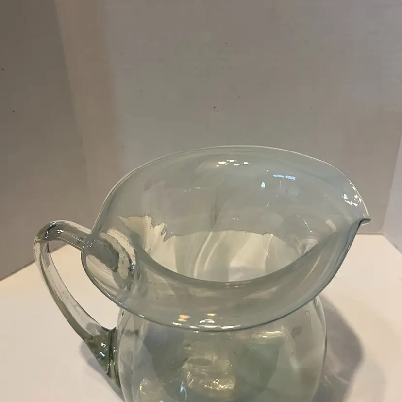 This a beautiful vintage water/tea Pitcher. I is 6” in diameter. The are no chips or cracks. Please see accompanying photos for condition and exact measurements.