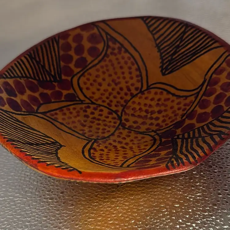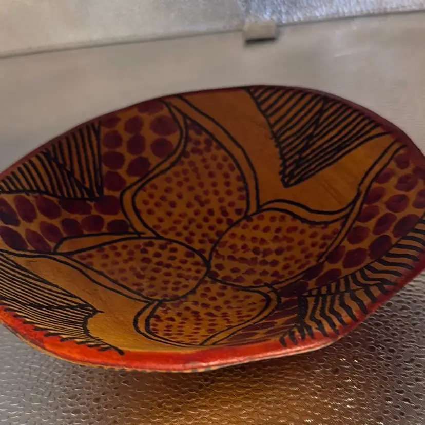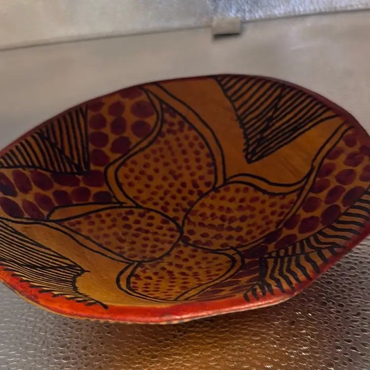 This would have been made by a tribe in Africa. They served fruit in it. It’s hand painted. It’s gorgeous to see such amazing craftsmanship. It’s unbelievable! Its use was suggested on google to be used as a decorative piece. These are rare to find.