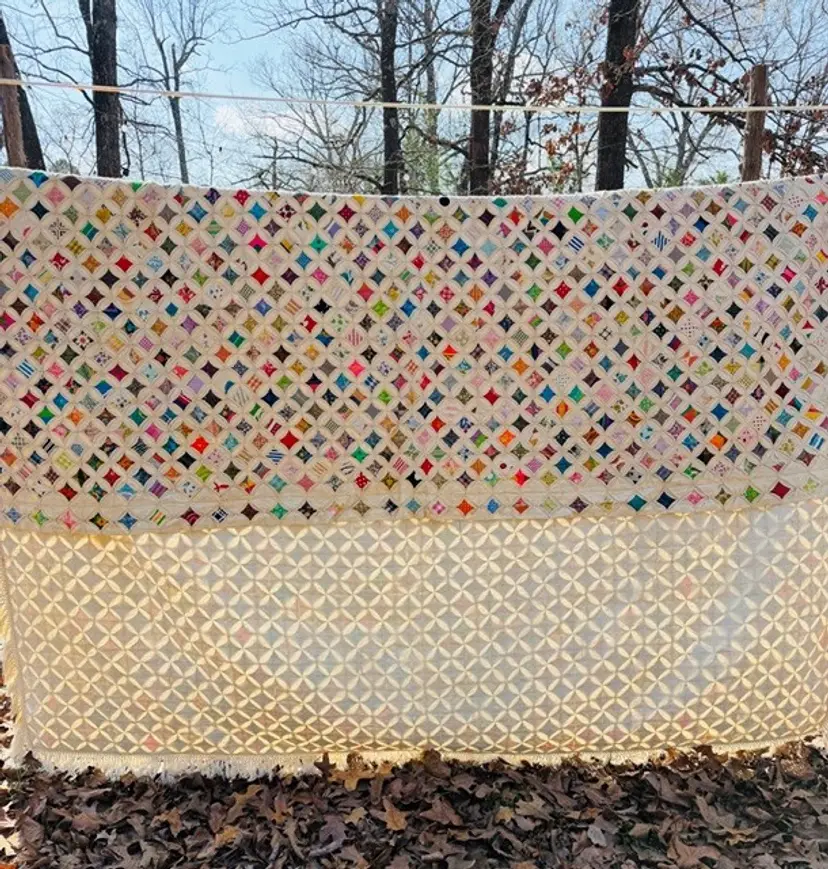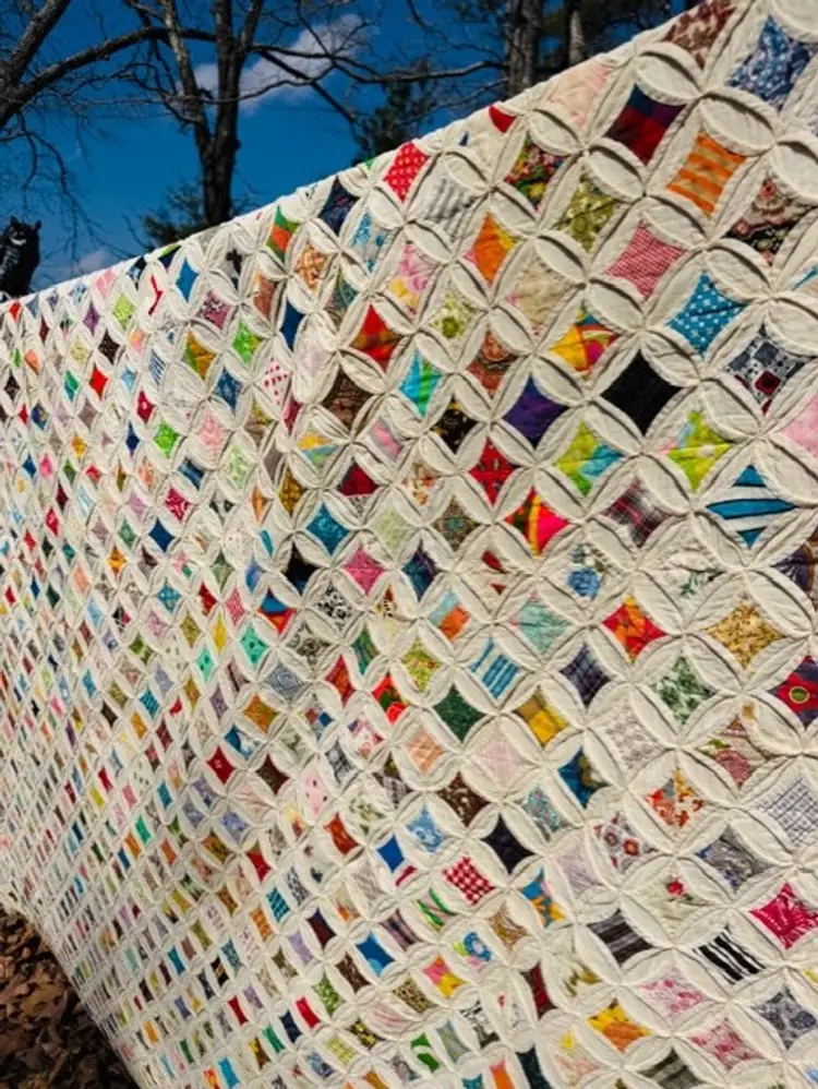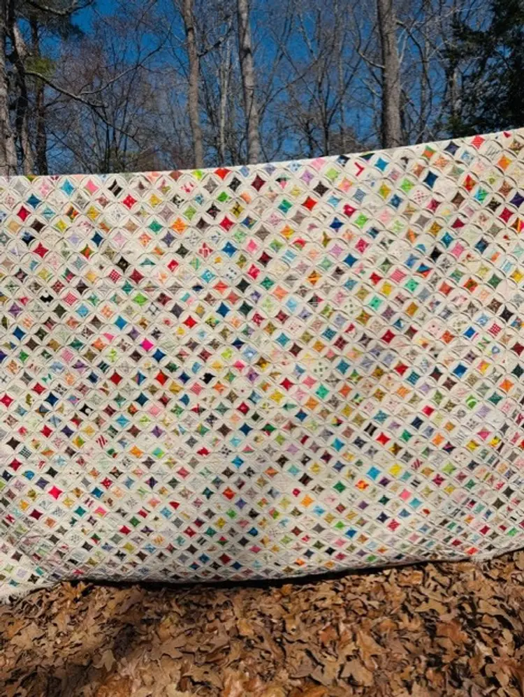 Vintage Handcrafted Cathedral Window Quilt 86 x 96 | Hand Stitched Cathedral Window Pattern Quilt Granny Core Quilt Blanket Vintage MCM