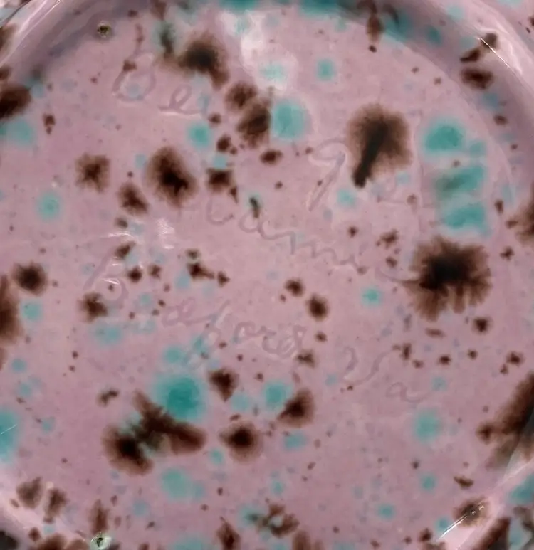The pitcher is in excellent condition - no chips, cracks or signs of wear. The inscription on the base is hard to discern, but I believe it says, "Bella Glen, Ceramic, Bedford, VA" (see last picture for best view of inscription).