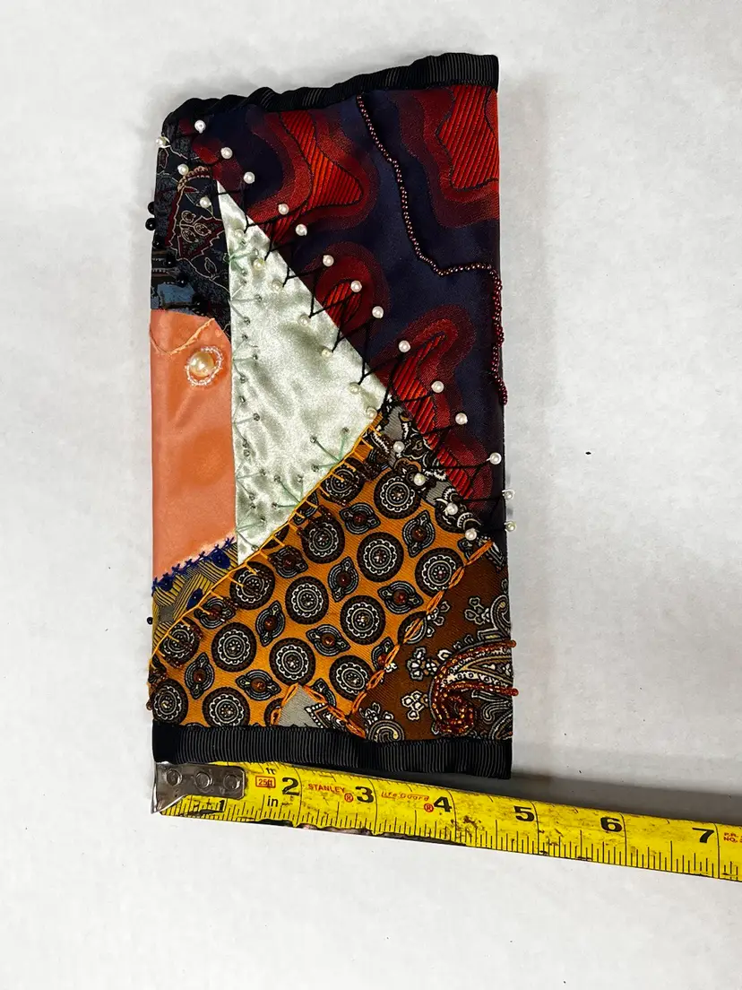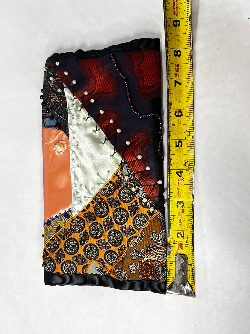 One of a kind handmade crazy patchwork hand bag Great used condition Measurements in photos