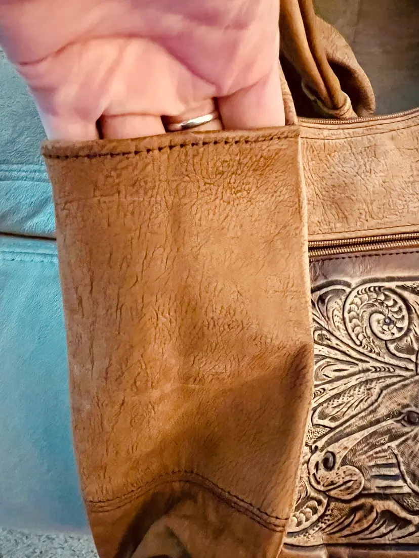 Vintage Handmade Genuine Leather Rose & Horse Carved Handbag Made In Mexico