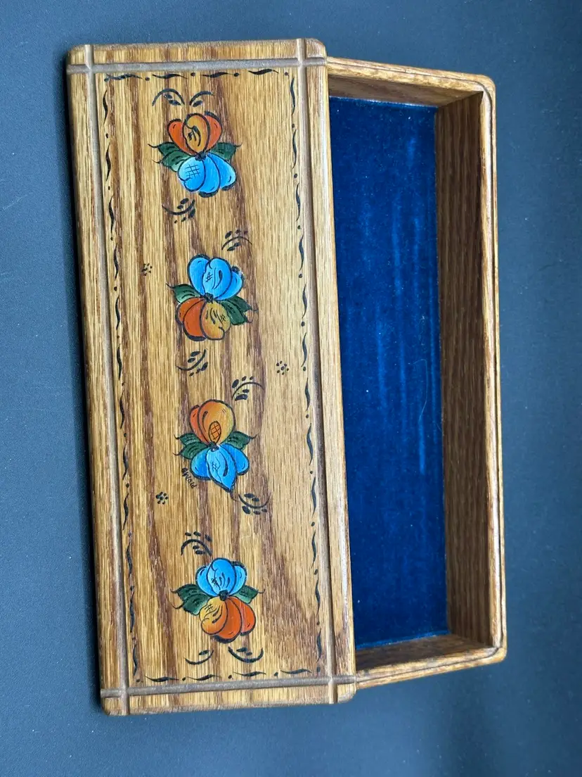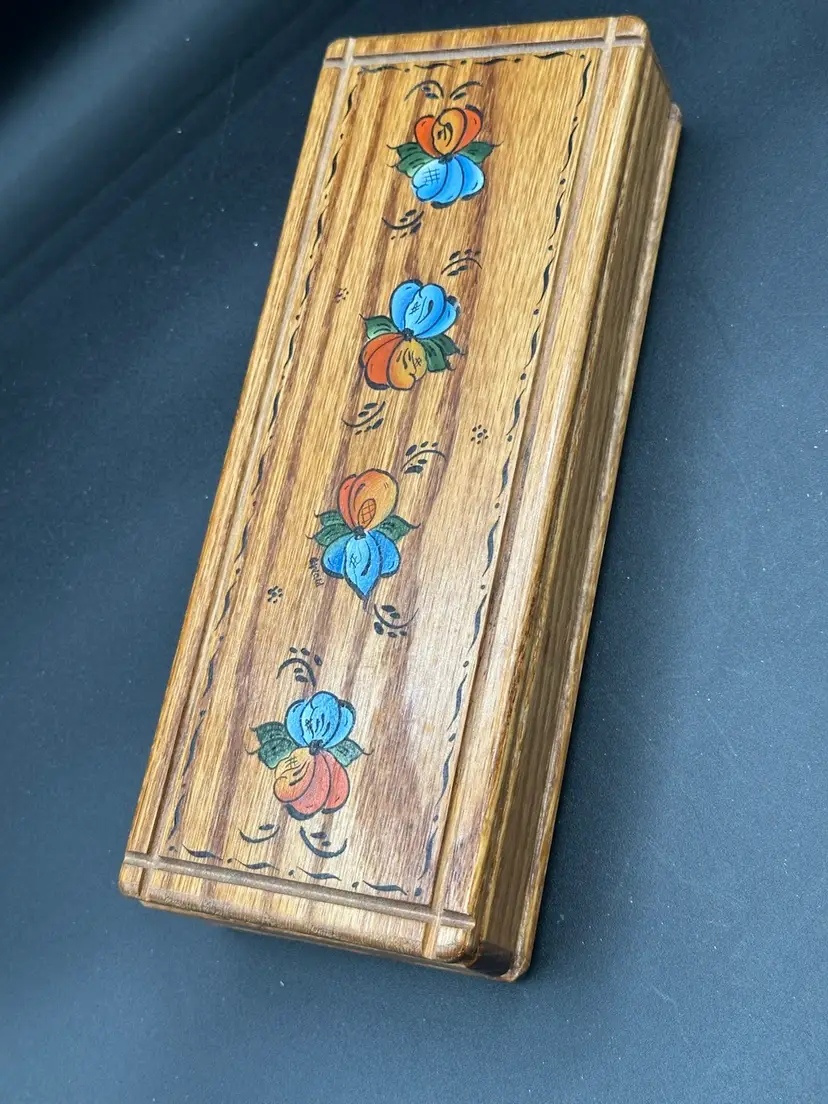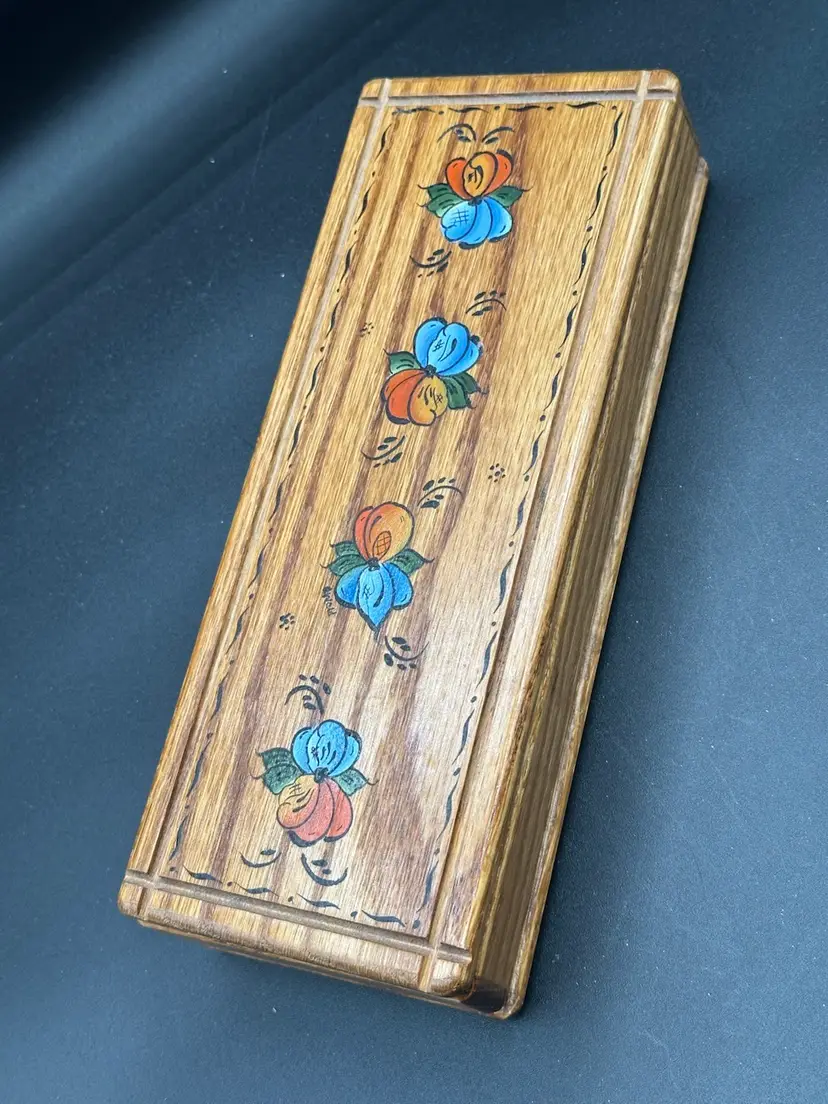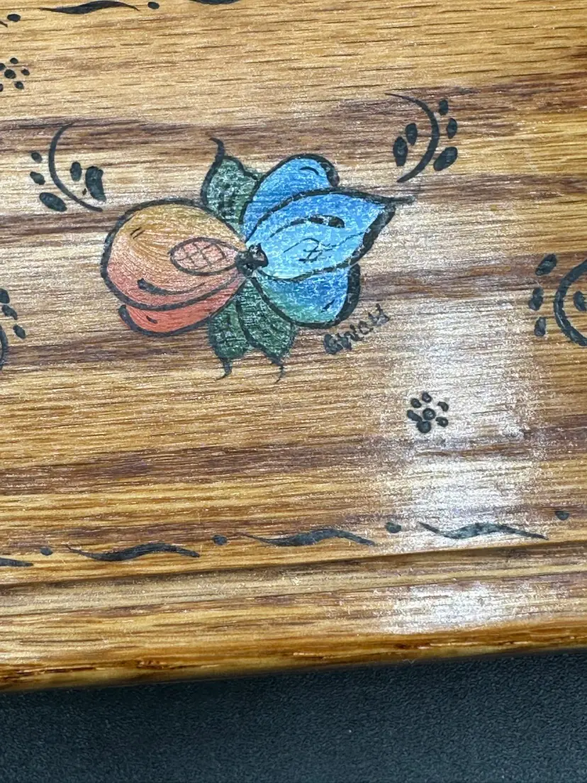 Vintage Handmade Hand Painted Wooden Desk Box Signed