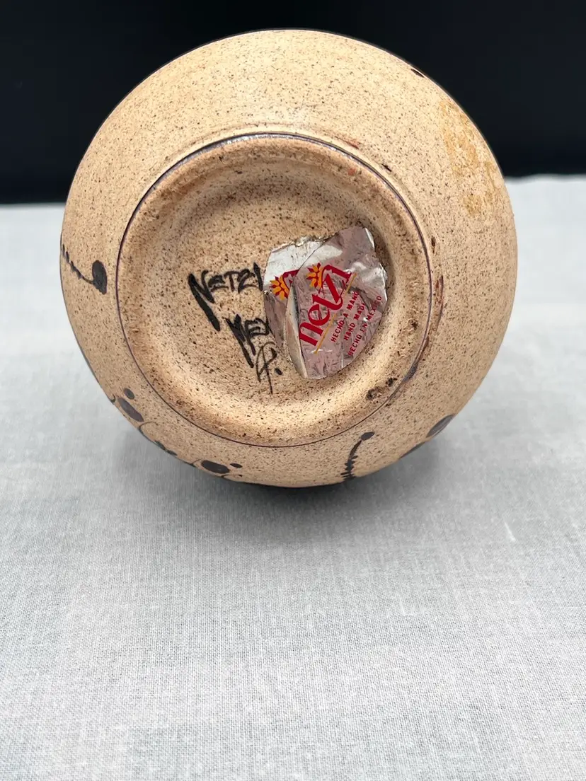 6 1/2” tall x 4” in diameter. Vase is marked Netzi Mex on it and it has its original sticker