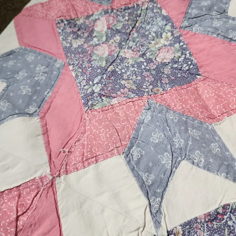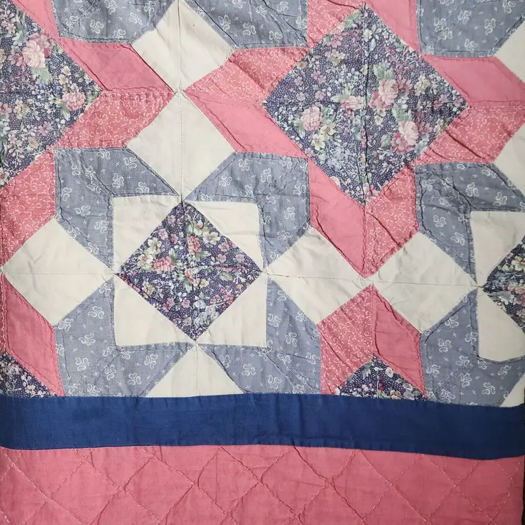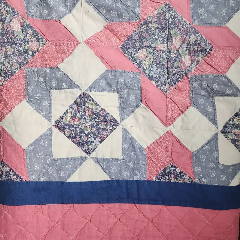 Brand: Handmade Color: Pink Set Includes: Quilt Original/Licensed Reproduction: Original Features: Hand-Stitched Country/Region of Manufacture: United States Item Length: 79" Care Instructions: Hand Wash Production Technique: Pieced Style: Vintage Type: Patchwork Quilt Size: Double Department: Girls, Kids, Teens, Adults, Unisex, Women Theme: Periods & Styles, Romantic, Seasonal Handmade: Yes Item Width: 82" Pattern: Floral Room: Bedroom Shape: Square Material: Cotton condition: 3000