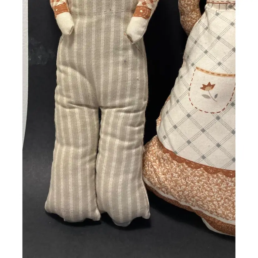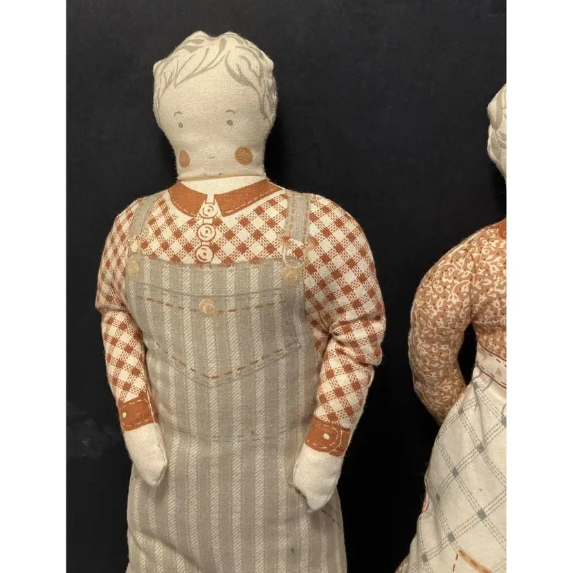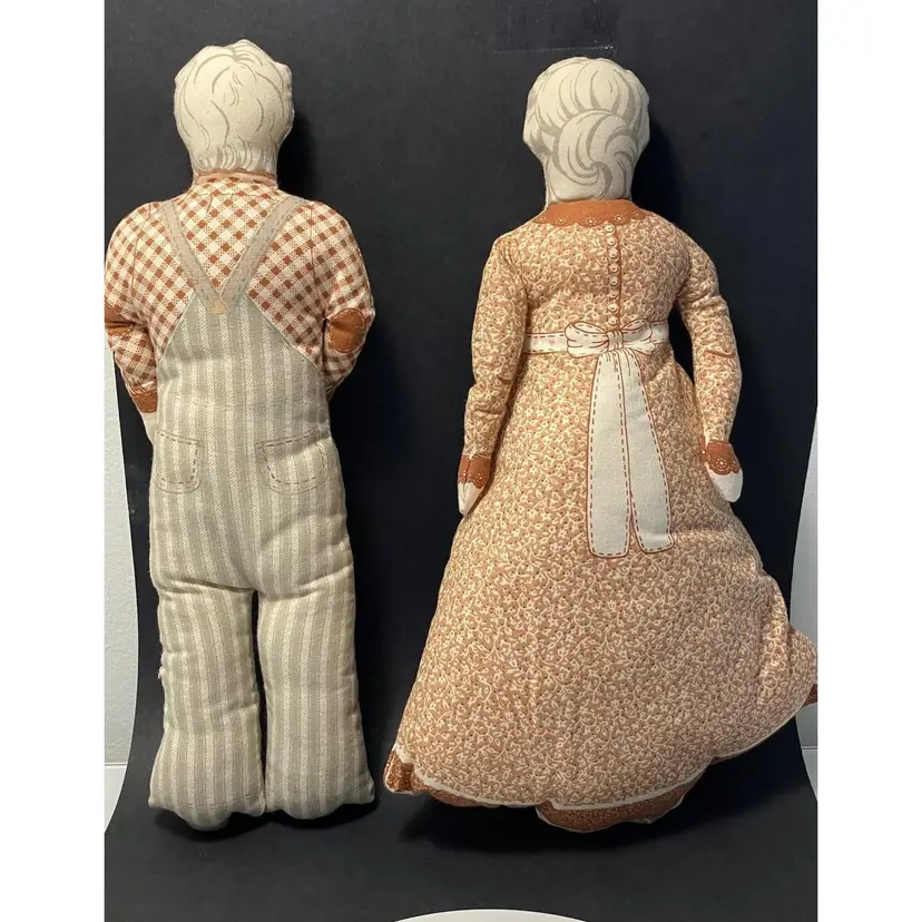Cut N Sew Rag Doll from the 1970s. In great condition without rips or stains. Dimensions: 12.5 inches long. the boy is about 4 inches wide. The girl is about 7.5 inches at its widest (the skirt). They are about 2 inches wide.