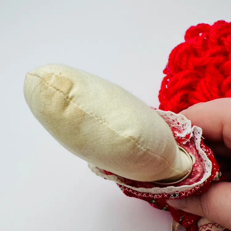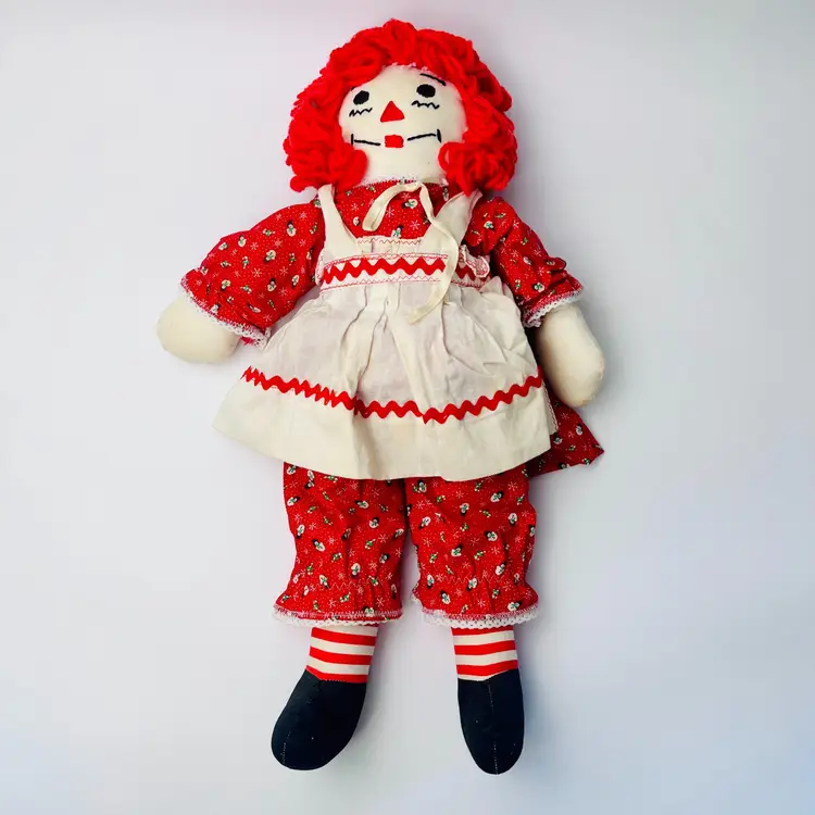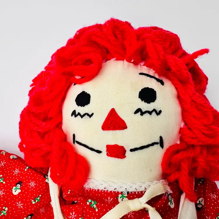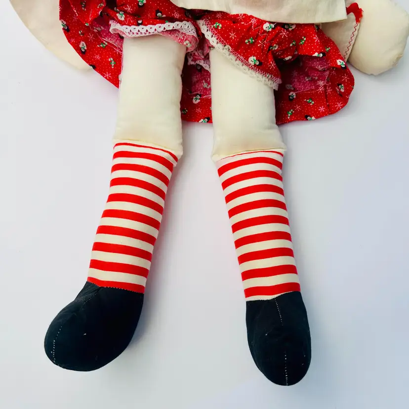 This item is in good vintage condition. No holes or thread pulls. There is a stain on her hand - shown in images. Smoke free environment. See all images for details. Measures 21" tall and weighs 12oz
