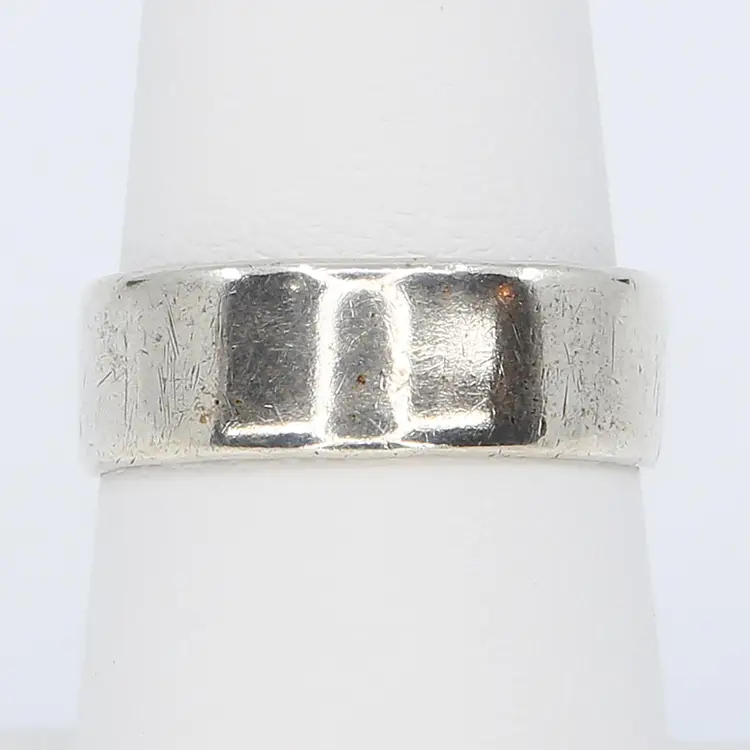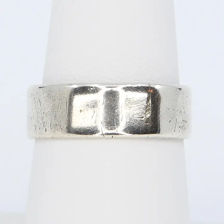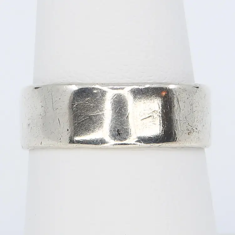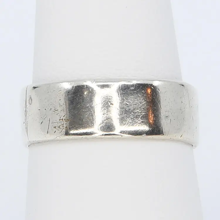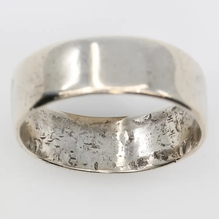 This vintage, handmade silver ring, reputed to be crafted from a silver coin, features a unique and intriguing pattern on the inside. With its artisan style, the ring is a throwback to the DIY jewelry-making trend of the 1970s, when people often used what they had on hand to create personal, artistic pieces. The craftsmanship and history behind this ring make it a perfect addition for those who appreciate vintage and one-of-a-kind jewelry.