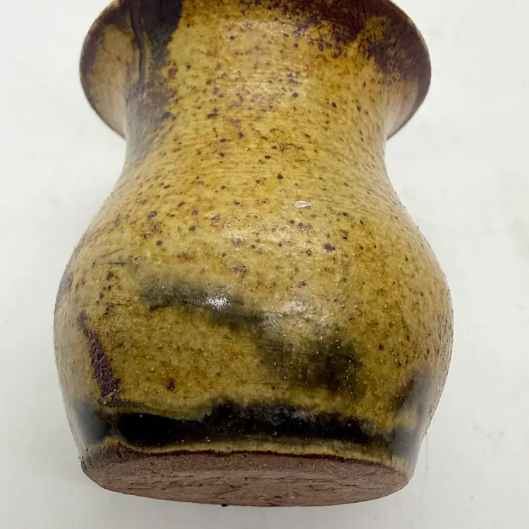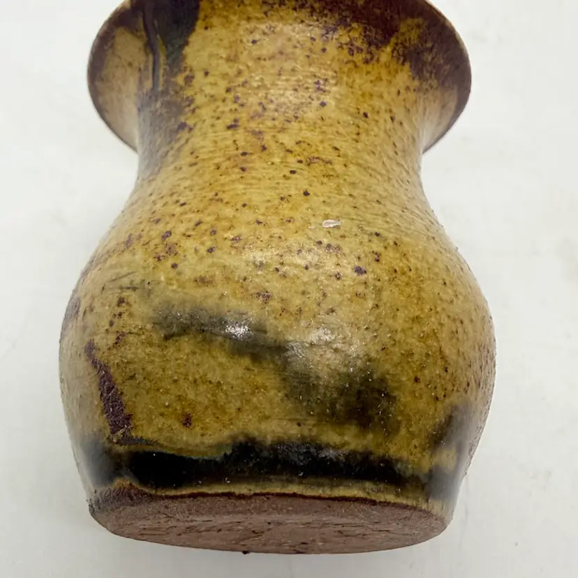 Vintage 1994 Handmade Small Studio Speckled Stoneware Art Pottery Vase. Artist Signed Luck's Ware Shirley Criscoe. No chips or cracks. Signs of light wear and use.