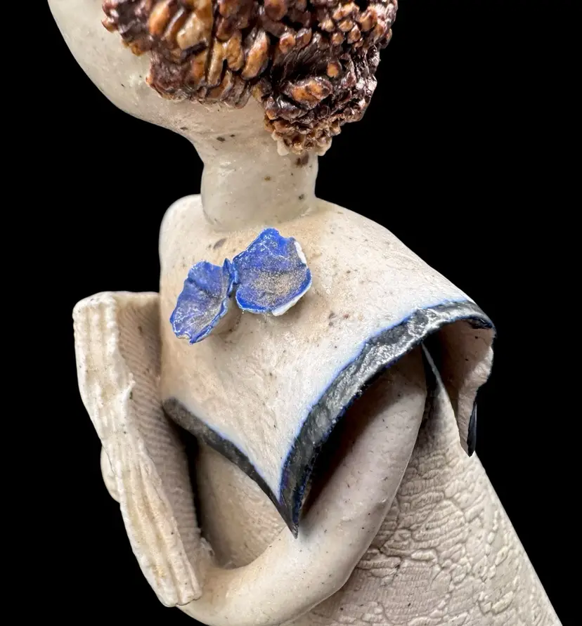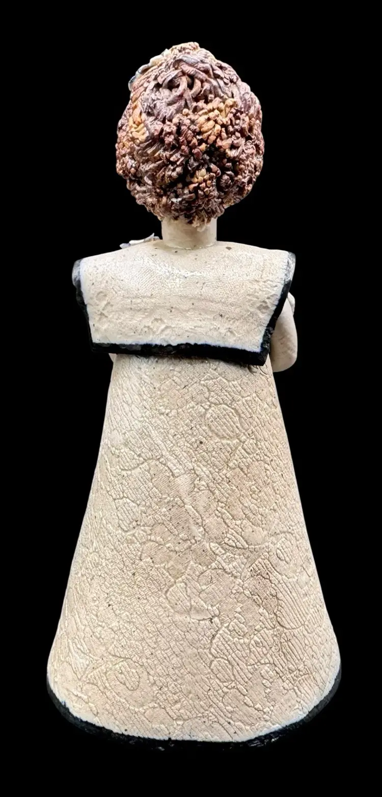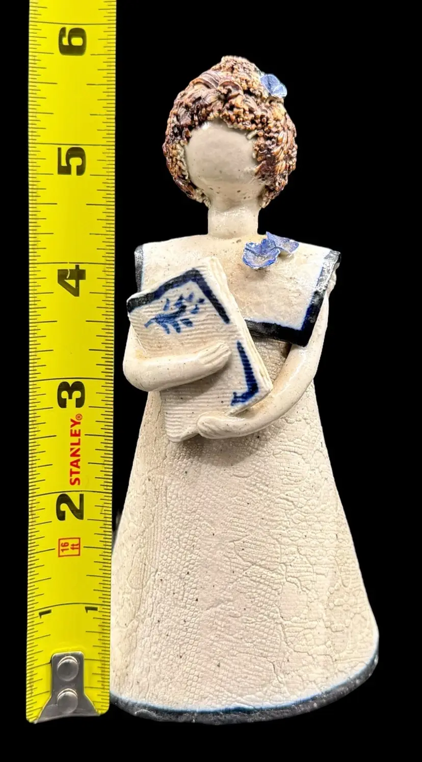 Adorable pottery figurine made in Venezuela. It depicts a girl holding a book.