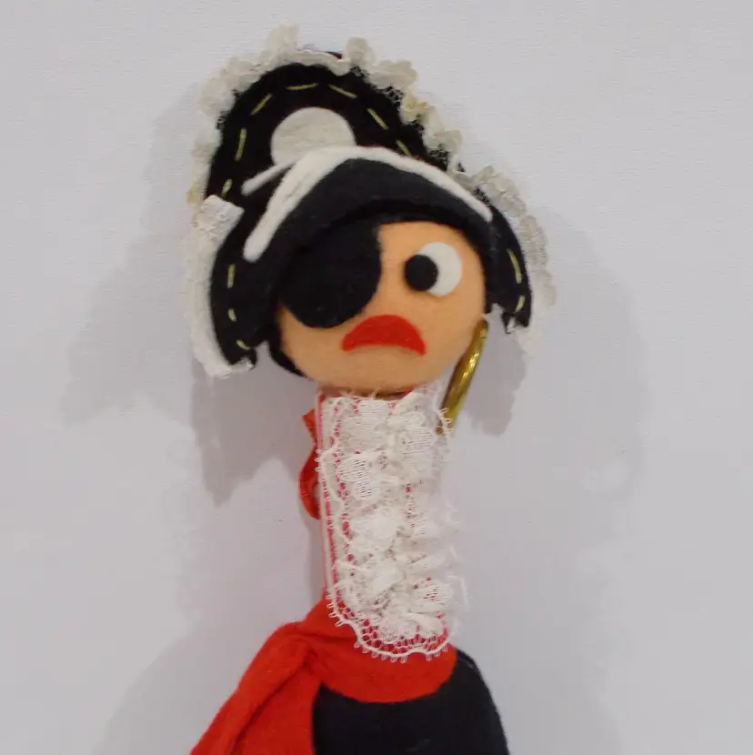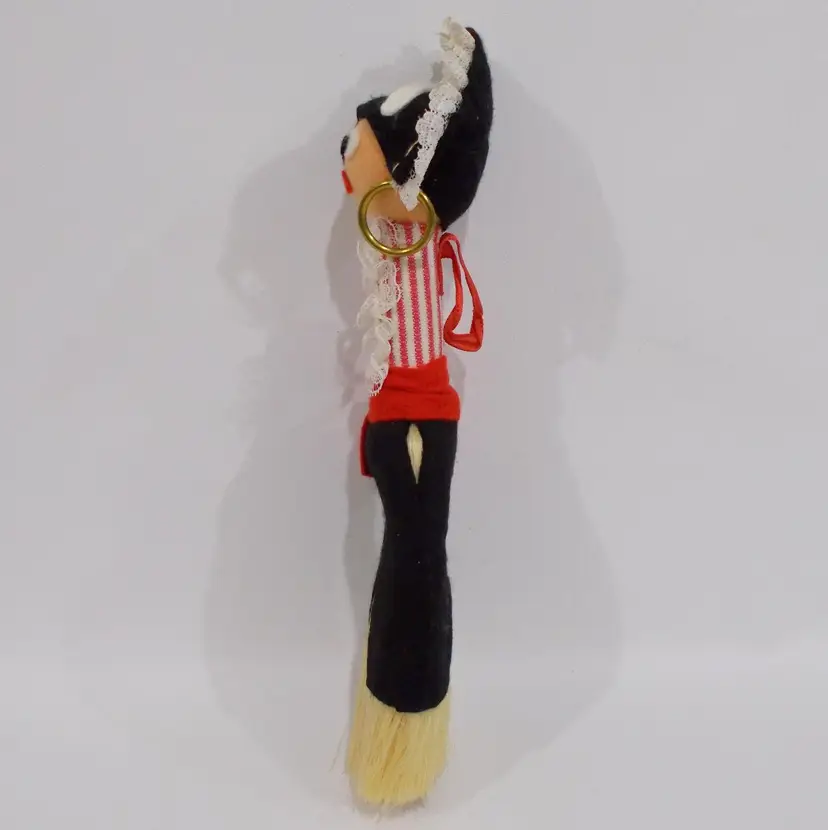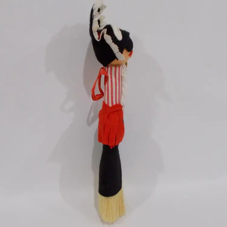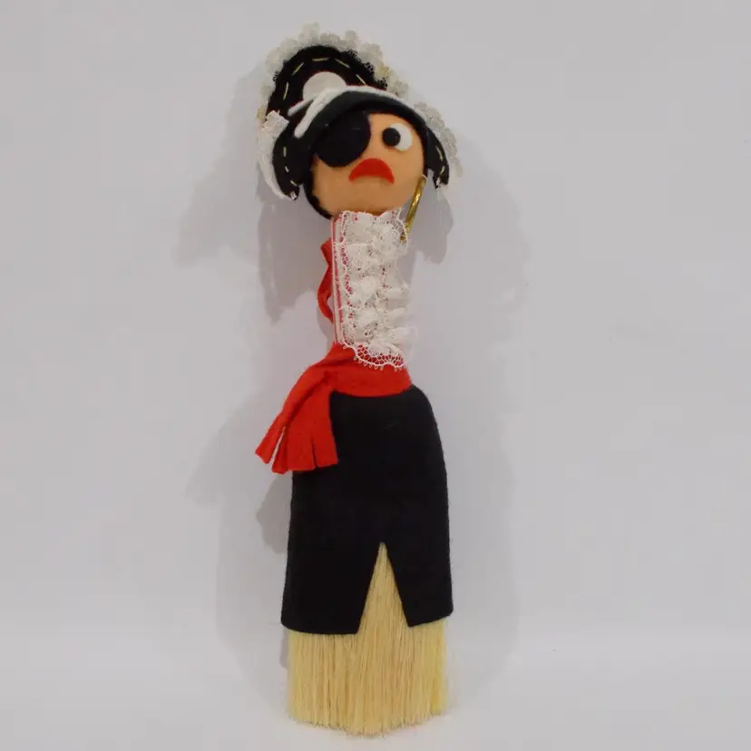 Vintage handmade pirate straw whisk broom crumb brush. Kitschy mid century style. Measures 9" tall. Felt covered straw, made to look like a pirate. No visible flaws or wear.