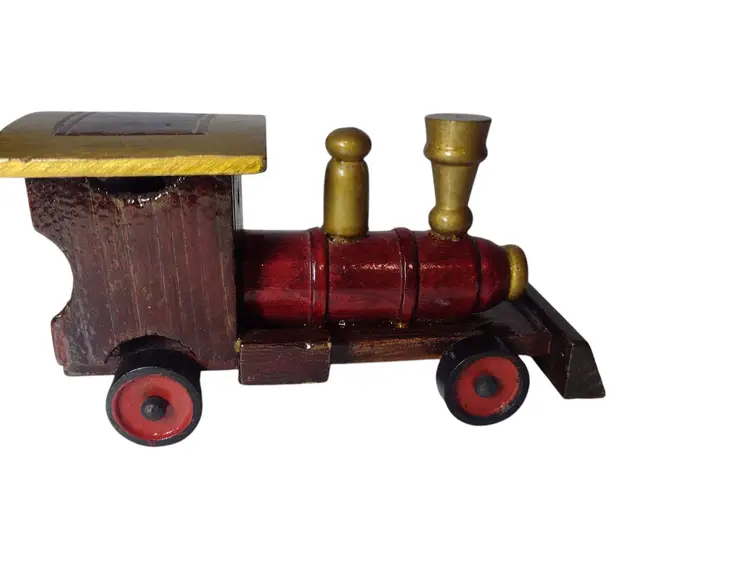 This is a very nice handmade wooden train engine that is stained & handpainted. Train measures 5.5" long x 2.25" wide x 3" tall.