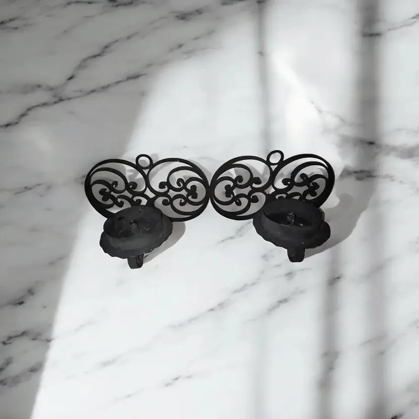 Introducing our Vintage Handmade Wrought Iron Candle Holder. This one-of-a-kind piece was skillfully crafted by hand, creating a beautiful and unique addition to any gothic home. Measuring at approximately 19 inches long, this candle holder is in great condition, making it a must-have for any candle lover.