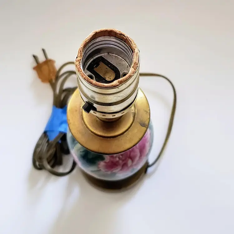 No shade, original wiring, verified it does work. Great condition, some tarnish on brass parts.