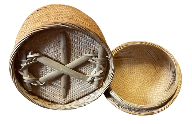 A masterfully crafted traditional Chinese Wedding Basket showcasing exceptional weaving techniques and cultural artisanship. Designed for storage and decorative purposes, this vintage piece represents the refined skill of bamboo artisans.