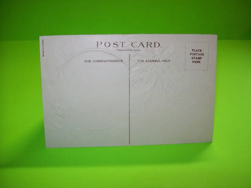 Unit of Sale: Single Unit Era: Pre-War (Pre-1914) Original/Licensed Reprint: Original Occasion: Christmas Postage Condition: Yes Features: Embossed, Divided Back Subject: Artist Material: Paper Theme: Fantasy, Art, Holiday, Greetings Time Period Manufactured: 1900-1919 Type: Printed (Lithograph) Artist: Unknown Country/Region of Manufacture: Germany Year Manufactured: 1910