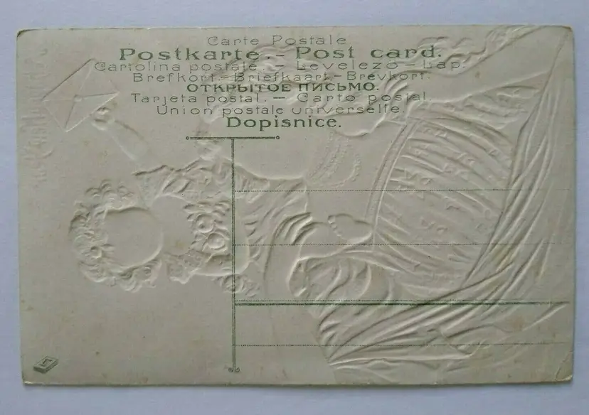 Unit of Sale: Single Unit Era: Pre-War (Pre-1914) Original/Licensed Reprint: Original Occasion: New Year Postage Condition: Yes Features: Embossed, Divided Back Subject: Artist Material: Paper Theme: Art, Fantasy, Holiday, Greetings Time Period Manufactured: 1900-1919 Type: Printed (Lithograph) Artist: Unknown Country/Region of Manufacture: Unknown Year Manufactured: 1910