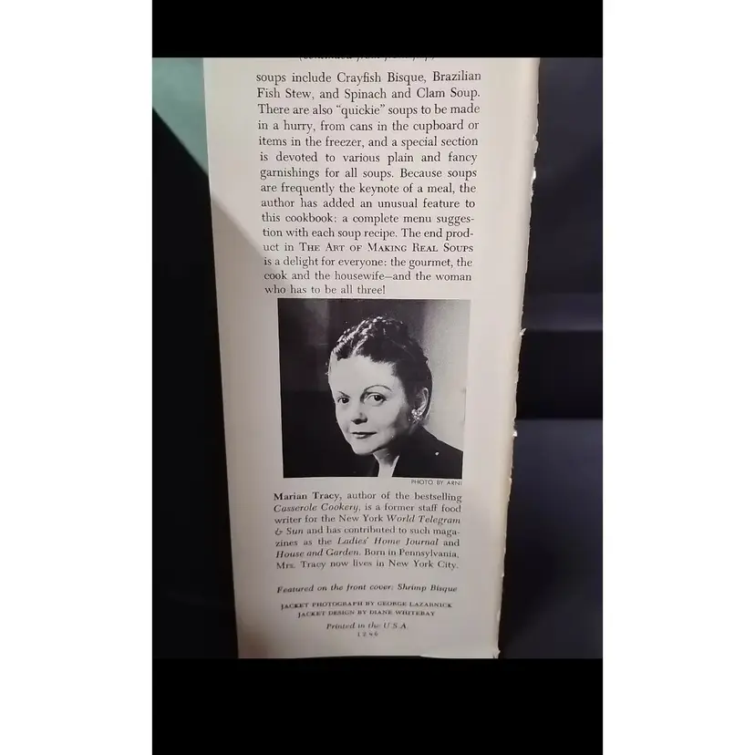 Discover the secrets of making real soups with this vintage 1967 1st edition cookbook by Marian Tracy. Hardcover and in its original form, this book is a must-have for collectors and cooking enthusiasts alike. Published by Doubleday and printed in English, it covers a range of soup recipes from around the world.