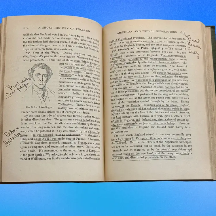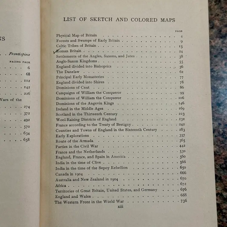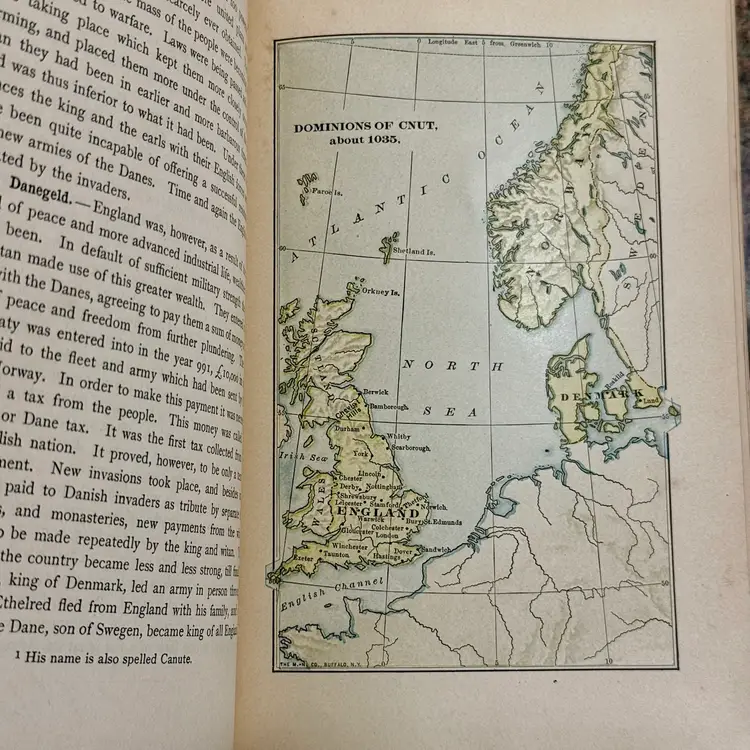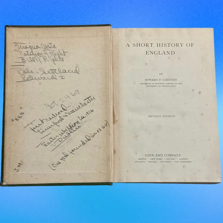 Revised edition; approx 7.5” x 5.5”; ©️1927; written by Edward P. Cheyney; 776pp; full of maps, genealogy tables, & illustrations. There is writing/underlining throughout the book, but overall, its condition is good, especially given that it will be antique in a year!