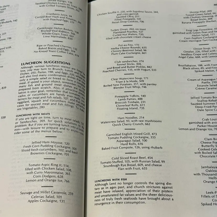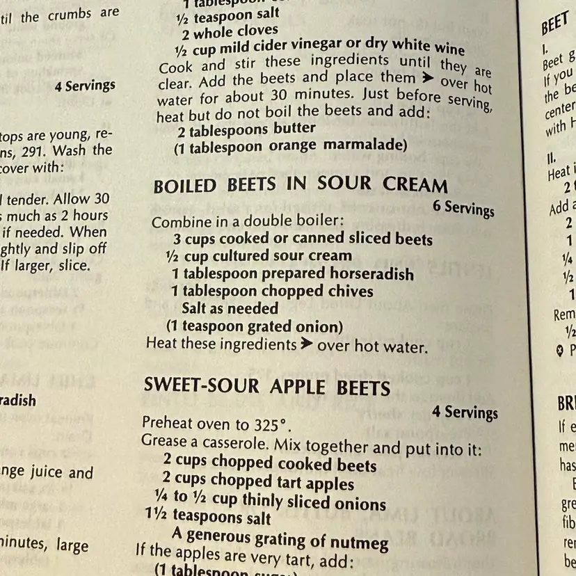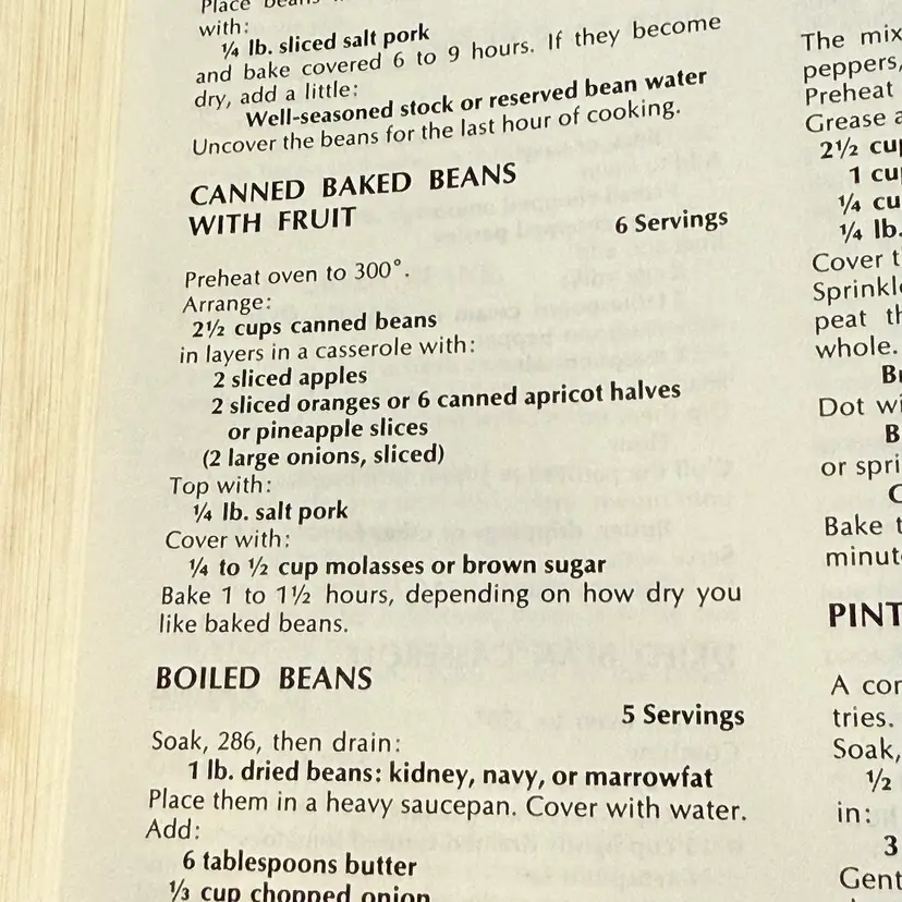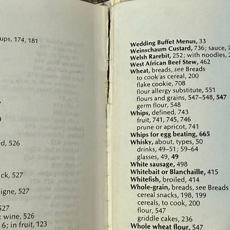 This is not just a cookbook — or the cookbook — it is a bible of cooking. It teaches about food, about menus, about table settings, entertaining, what beverages to serve with what meals, Where else will you find dried bean patties or peanut butter and tomato sandwiches or chicken liver topping for pasta or baked bananas or orange onion salad or peach cheese salad or WAIT A MINUTE…peanut butter cupcakes? Yes please.