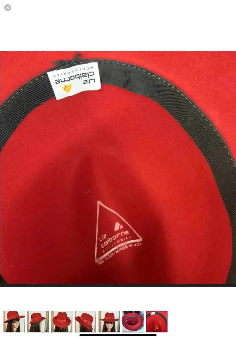 Vintage Hat Liz Claiborne 100% wool Red Approximately 21” Good Condition