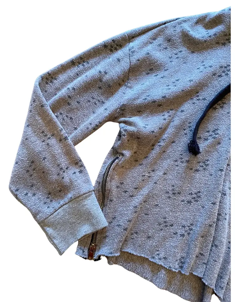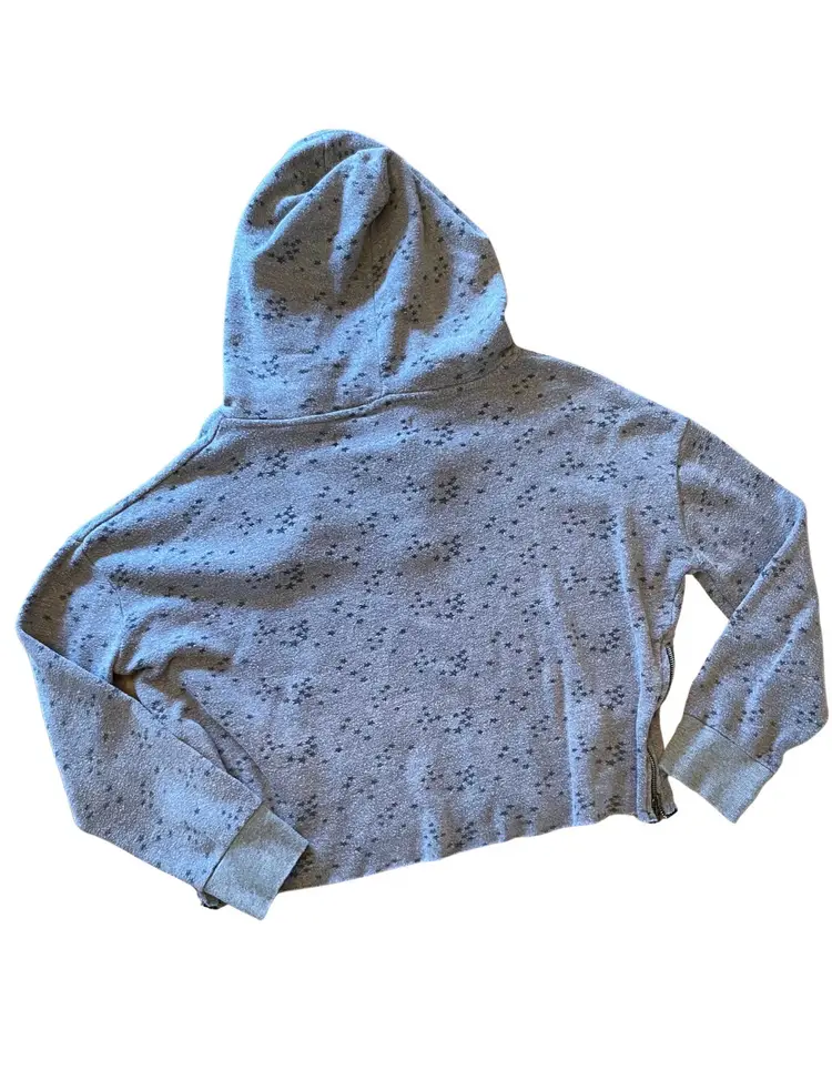 0583 RACK Vintage Havana Size Small Grey Stars Side zipper detail Hooded Slightly Cropped Meant to look worn, distressed Relaxed fit 55% Cotton, 45% Polyester