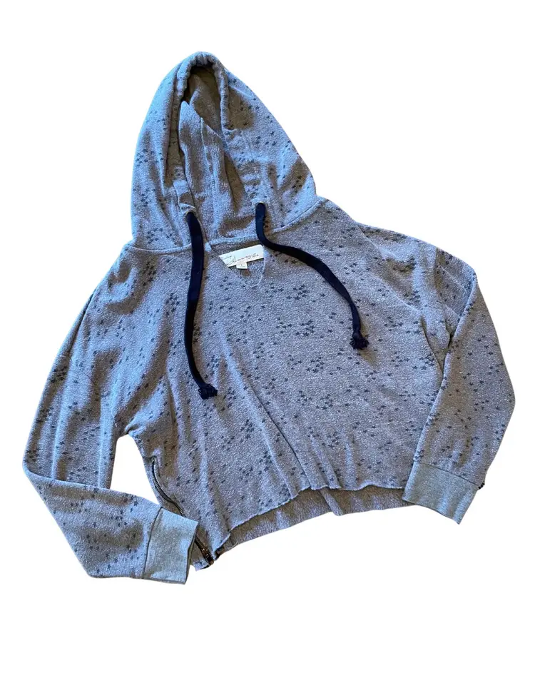 Vintage Havana Crop Distressed Zipper Side Pullover Hoodie Size Small 0583