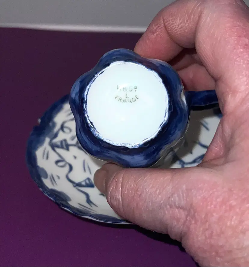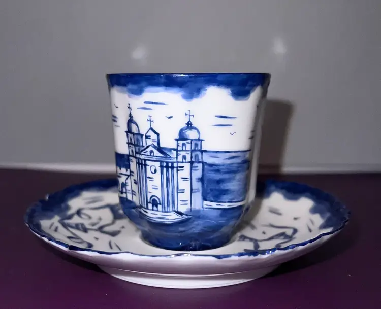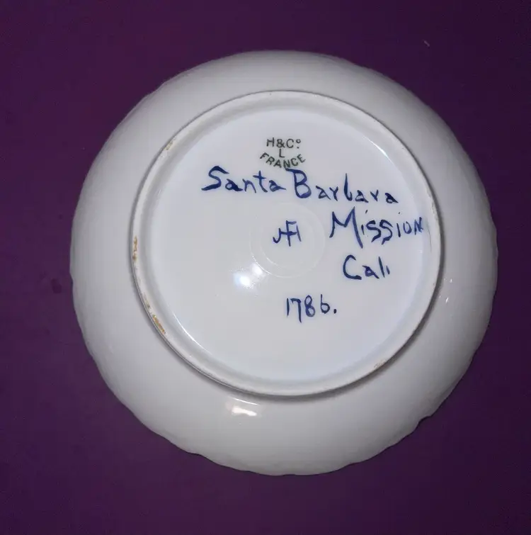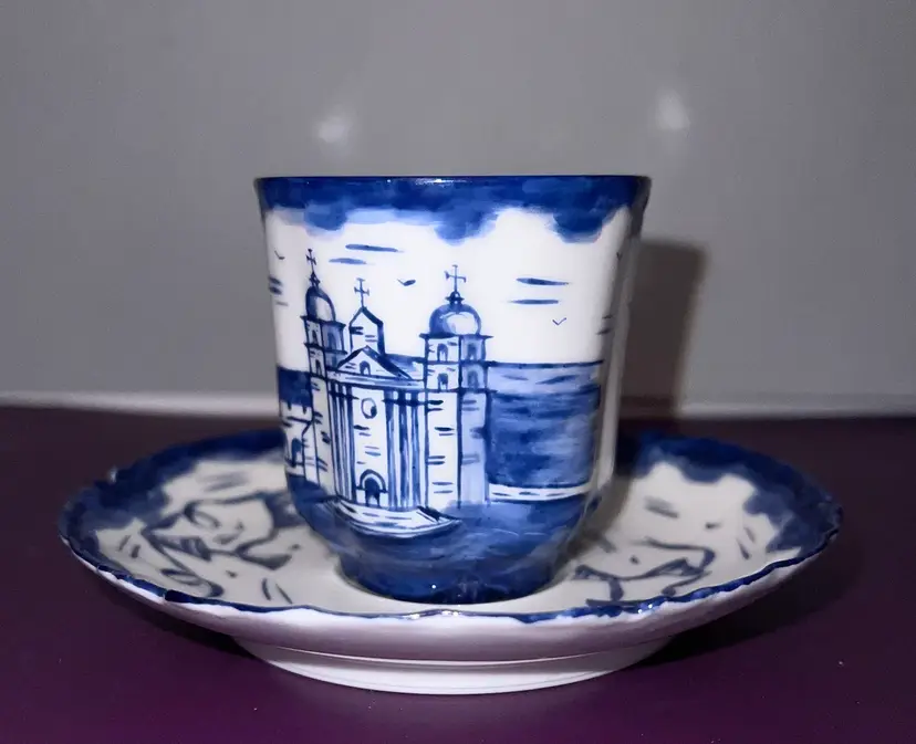 Lovely vintage Haviland Limoge demitasse cup and saucer. Hand painted image if Santa Barbara Mission in California. Cup is 2 1/2”. Saucer is 5” across. No chips or cracks
