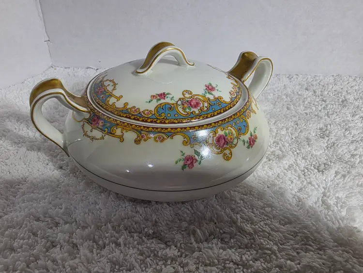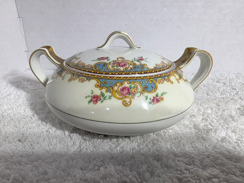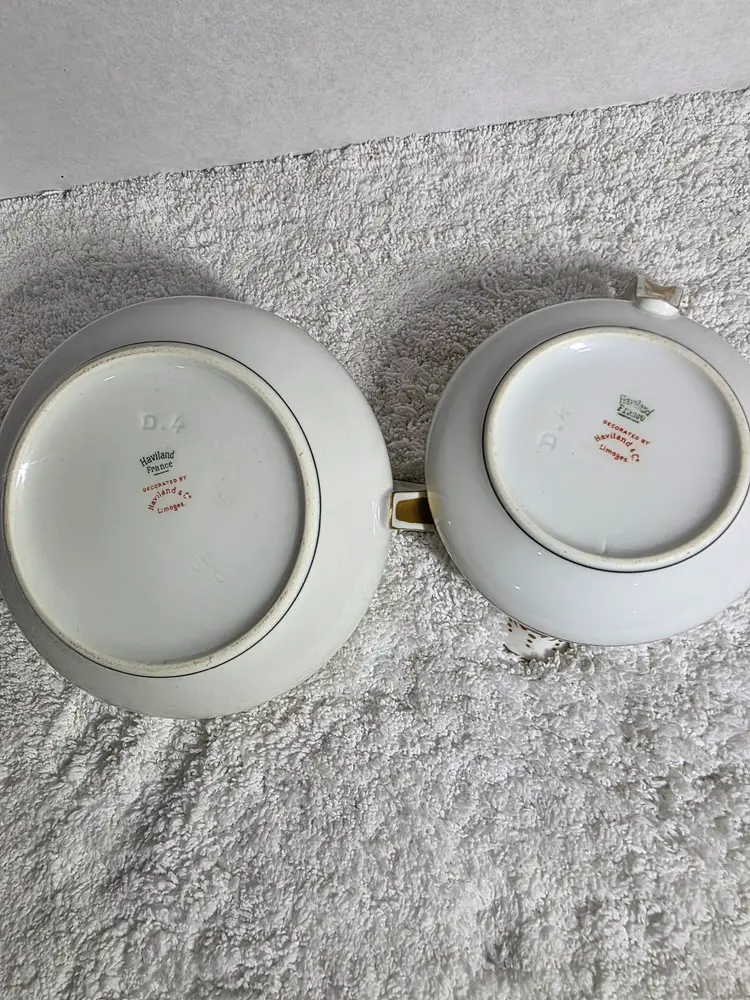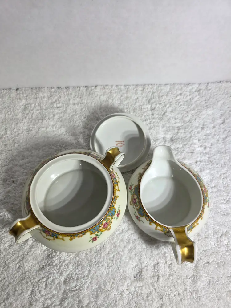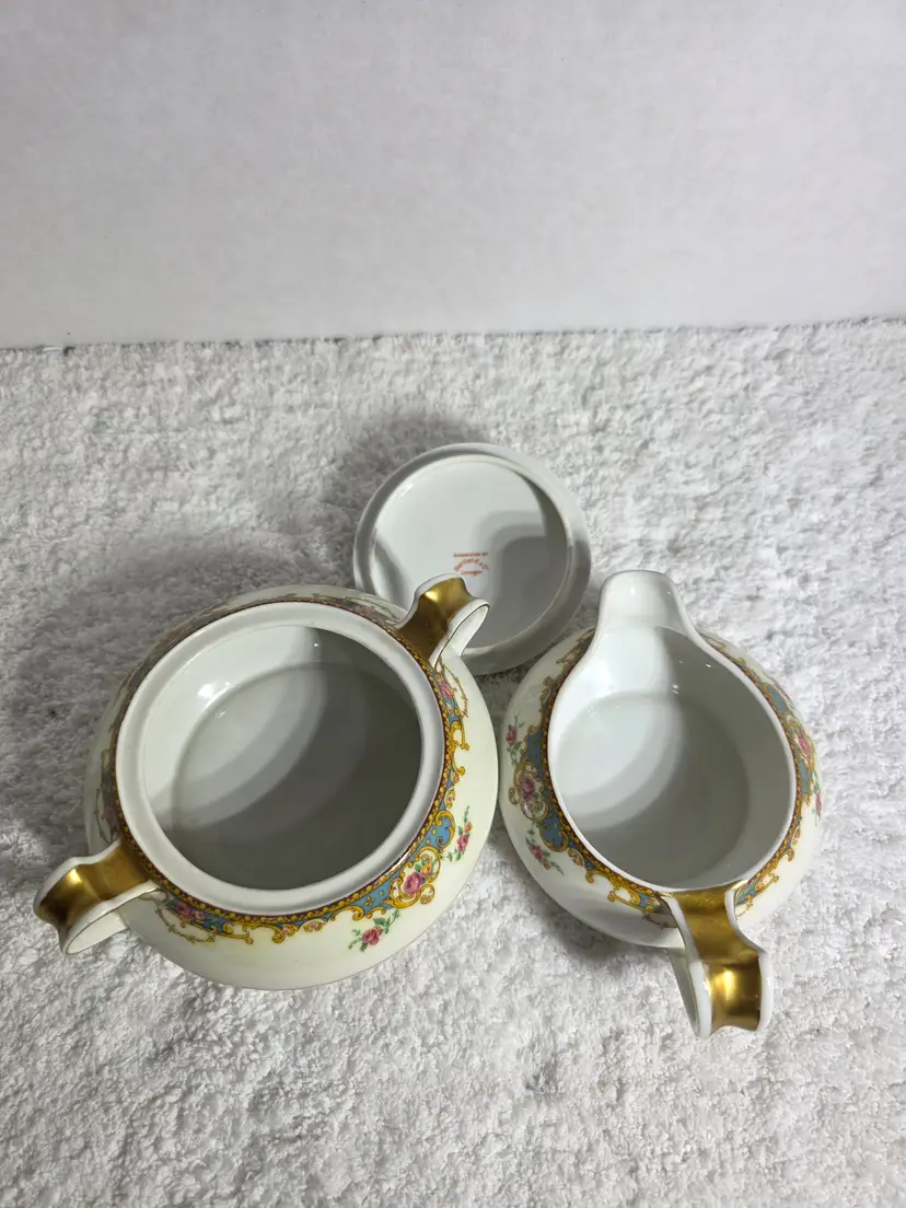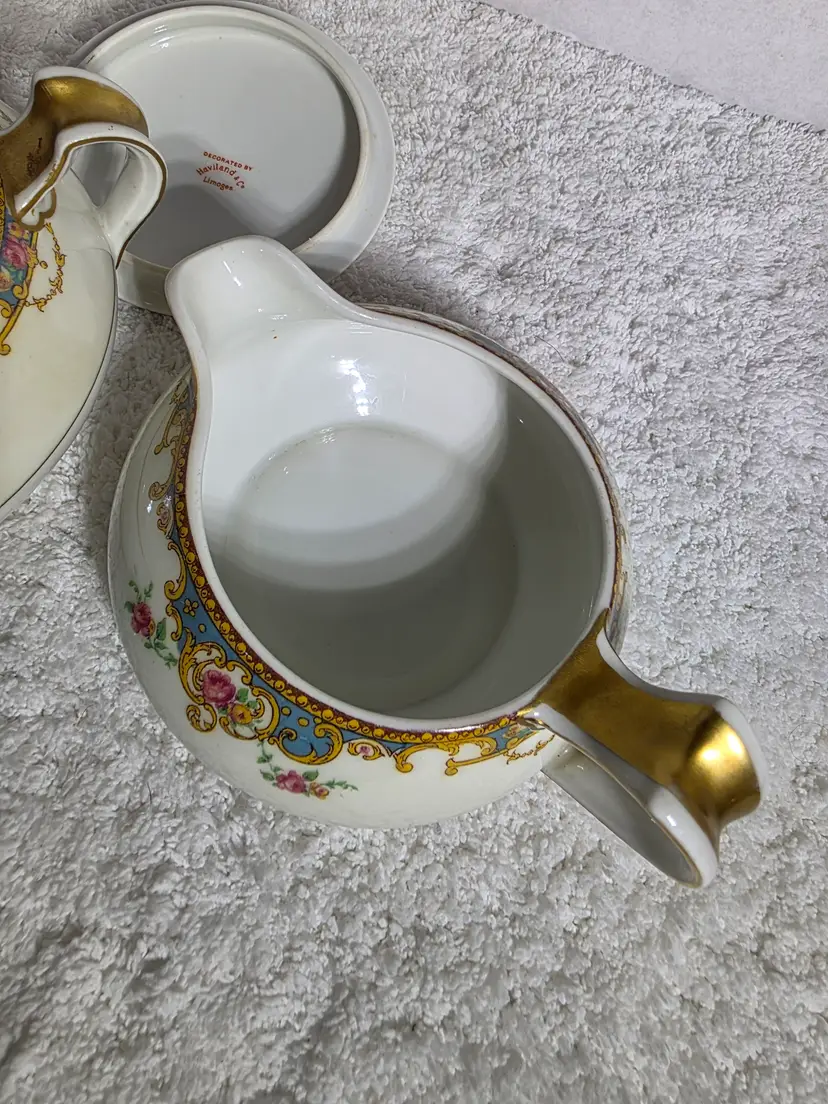 Vintage Haviland Limoges France Sugar Bowl & Creamer Set Gold Trim Pink Roses