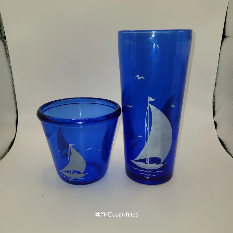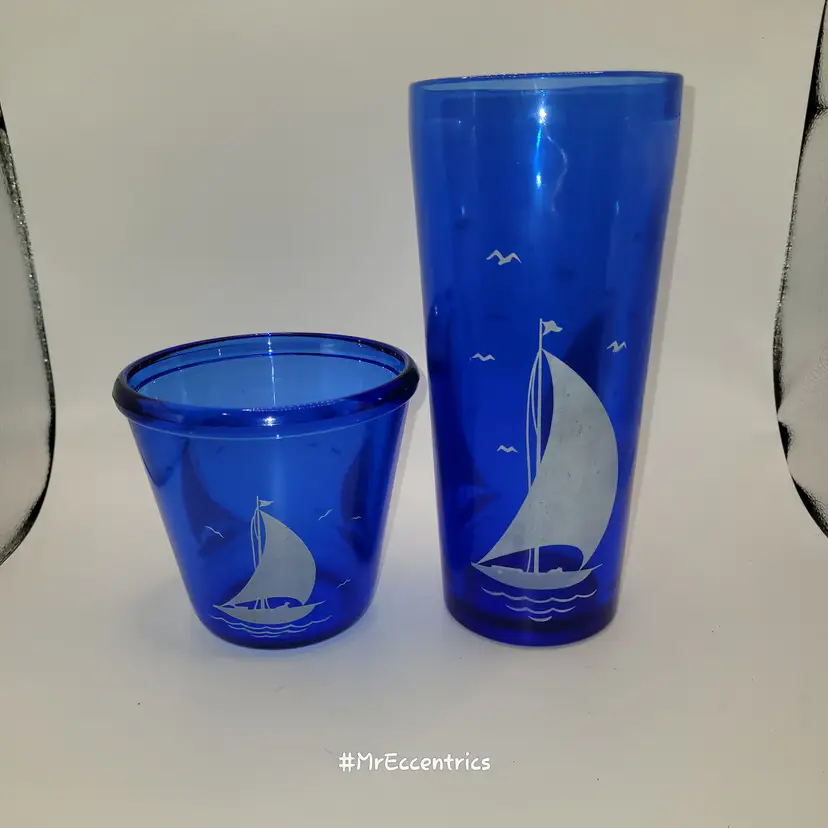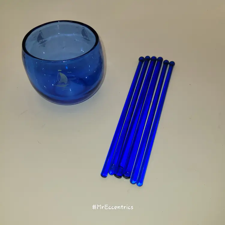 Please note some staining/ discoloration on the glasses. 3 stir Stix look chipped on end, but it's smooth, maybe manufacturer flaws, you decide. No lid for shaker