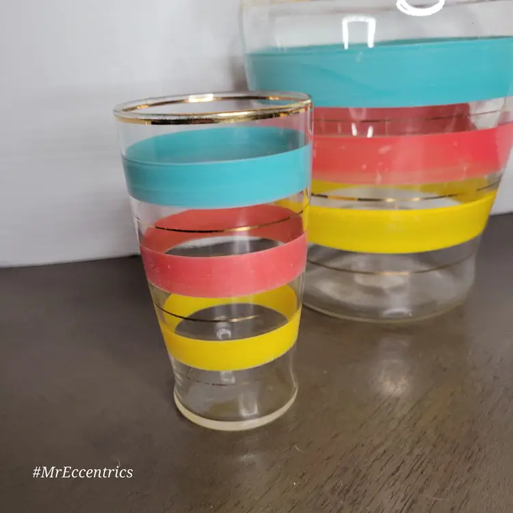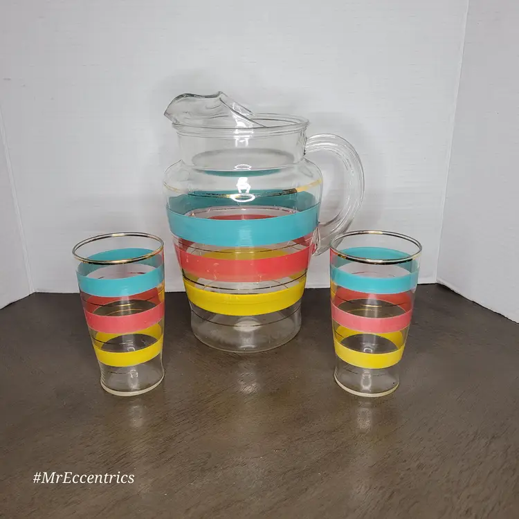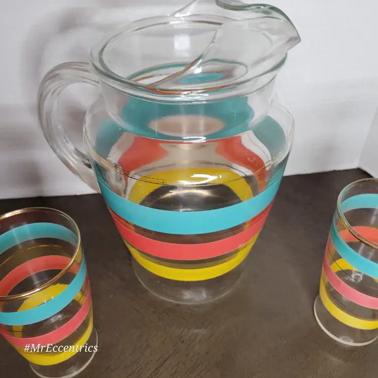 3 piece set. Some wear. Gold bands have wear. No cracks or chips