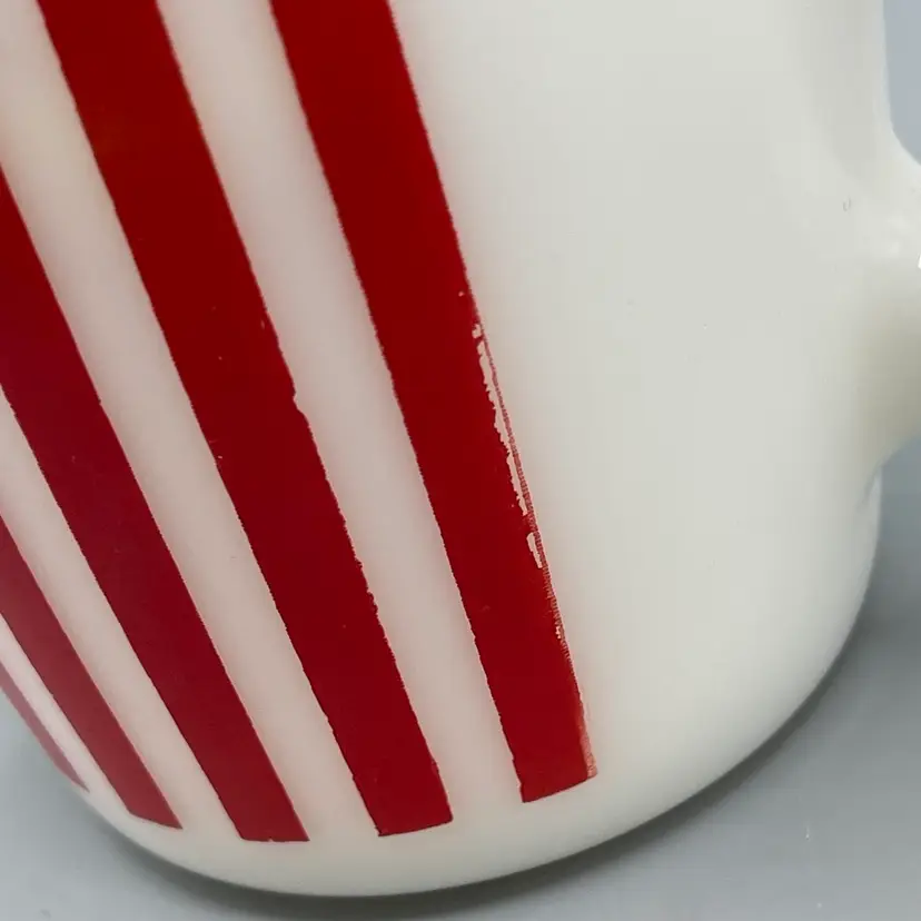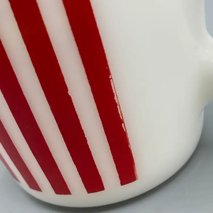 This colorful mug has no chips or cracks but does have some minor scratches to the paint and stands about 3-1/2 inches tall.