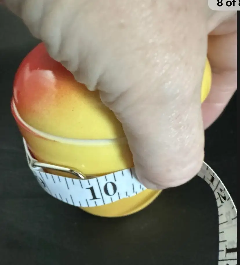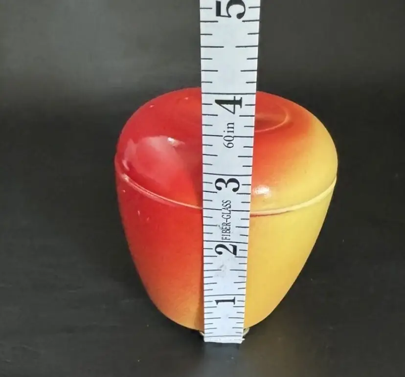 Crafted using fused glass production technique, this small fruit-shaped jar is a great addition to your mid-century modern decorative cookware collection. The item measures 3 inches in length, height, and width and is a great way to add a touch of vintage charm to your kitchen.