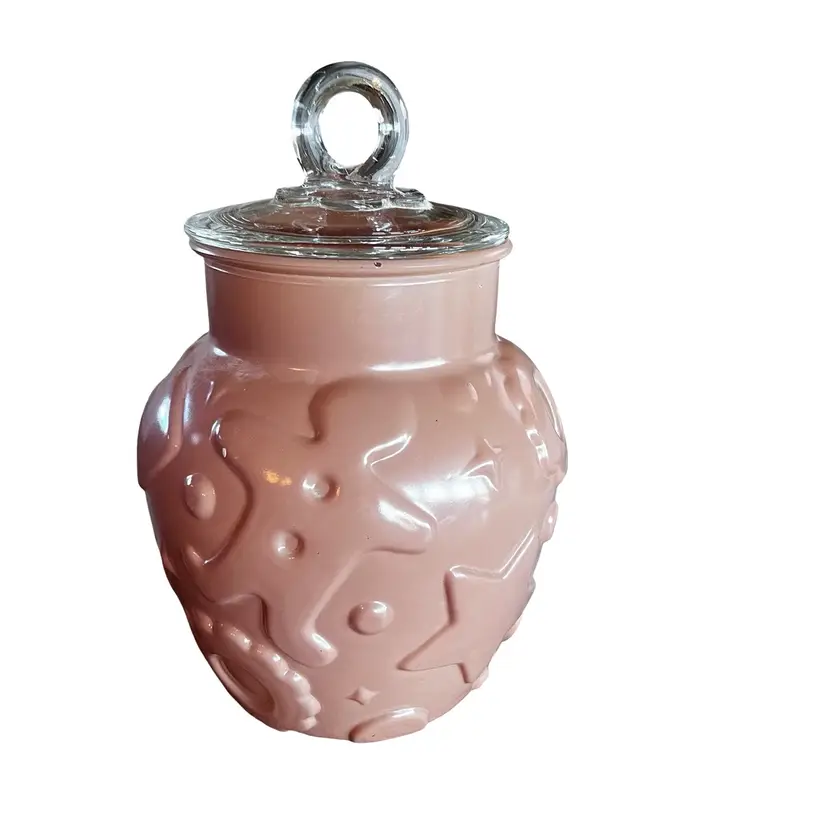 This vintage Hazel Atlas glass cookie jar features a charming gingerbread man design, perfect for adding a touch of nostalgia to your kitchen. The jar has a fitted lid and a single compartment, with dimensions of 9 1/2" in height and 4 3/4" across the top.
