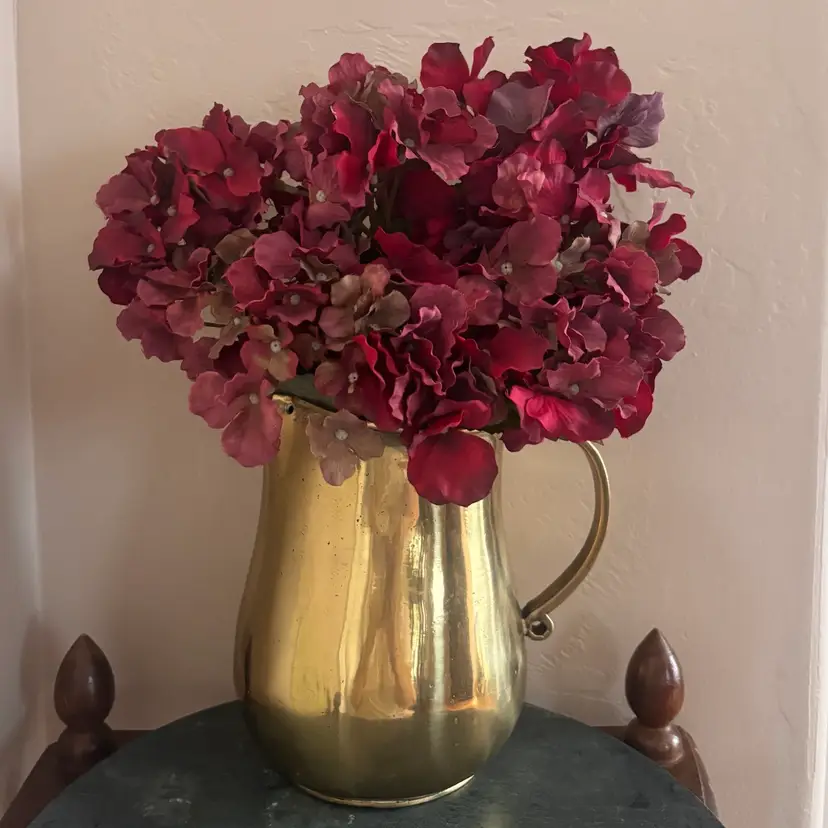 Pretty pitcher perfect for fall styling 7 1/2”tall x 6”wide Vintage wear & patina as shown